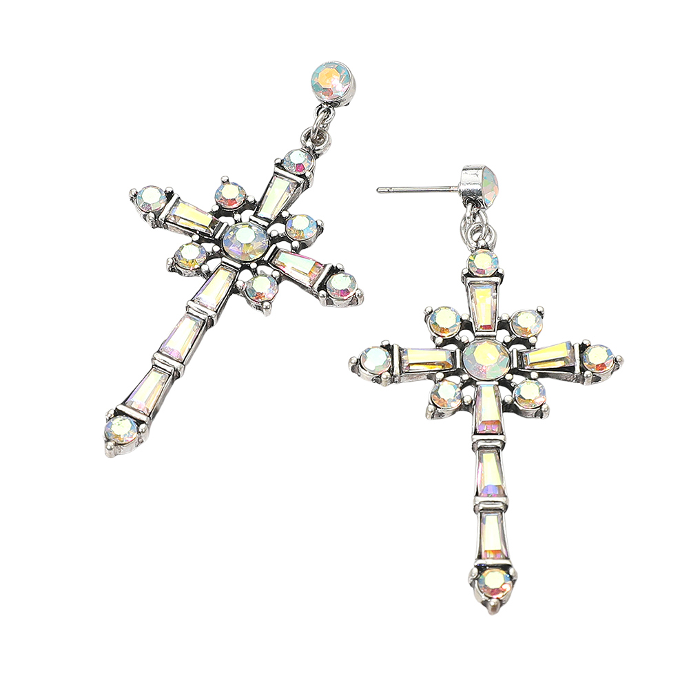 Details • Size : 1.25" X 2.3" • Post Back • Elegant cross drop earrings featuring shimmering geometric accent details, perfect for adding a refined yet bold touch to any outfit. Designed for those who love eye-catching accessories with a blend of modern edge and classic symbolism. • Lead and Nickel Compliant