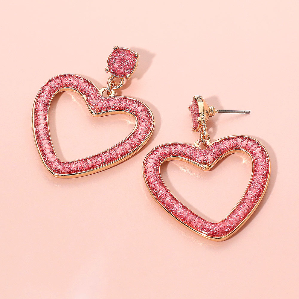 Details • Size : 1.25" X 1.7" • Post Back • Lightweight open-heart dangle earrings featuring a glittery accent finish and a bold drop-heart design. A stylish statement accessory ideal for gifting or adding a touch of sparkle to everyday and special-occasion looks. • Lead and Nickel Compliant