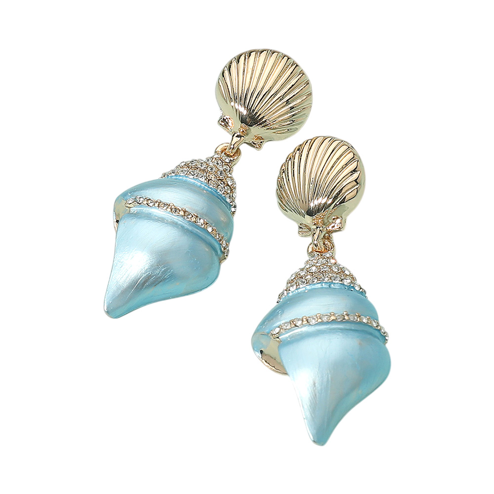 Details • Size : 1.8" X 1.75" • Make waves with these stunning shell statement drop earrings featuring a bold ocean-inspired design. Perfect for vacations, beach outings, or adding a touch of coastal elegance to everyday looks, these earrings bring a stylish and unique accessory to your jewelry collection. • Gold Dipped • Lead and Nickel Compliant • Sterling Silver Post