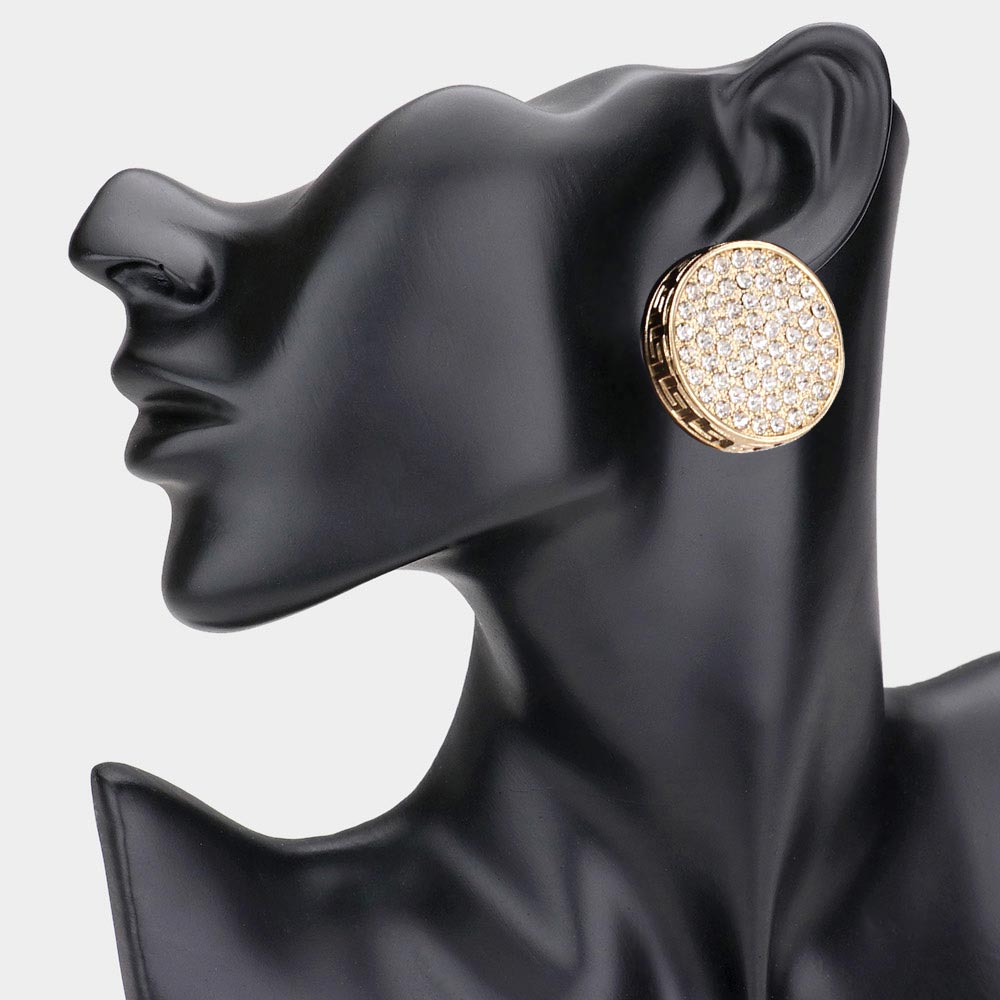 • Bold round stud earrings embellished with sparkling crystal accents for a radiant finish. Their timeless design adds elegance to any outfit, making them a versatile accessory for both casual and formal occasions.