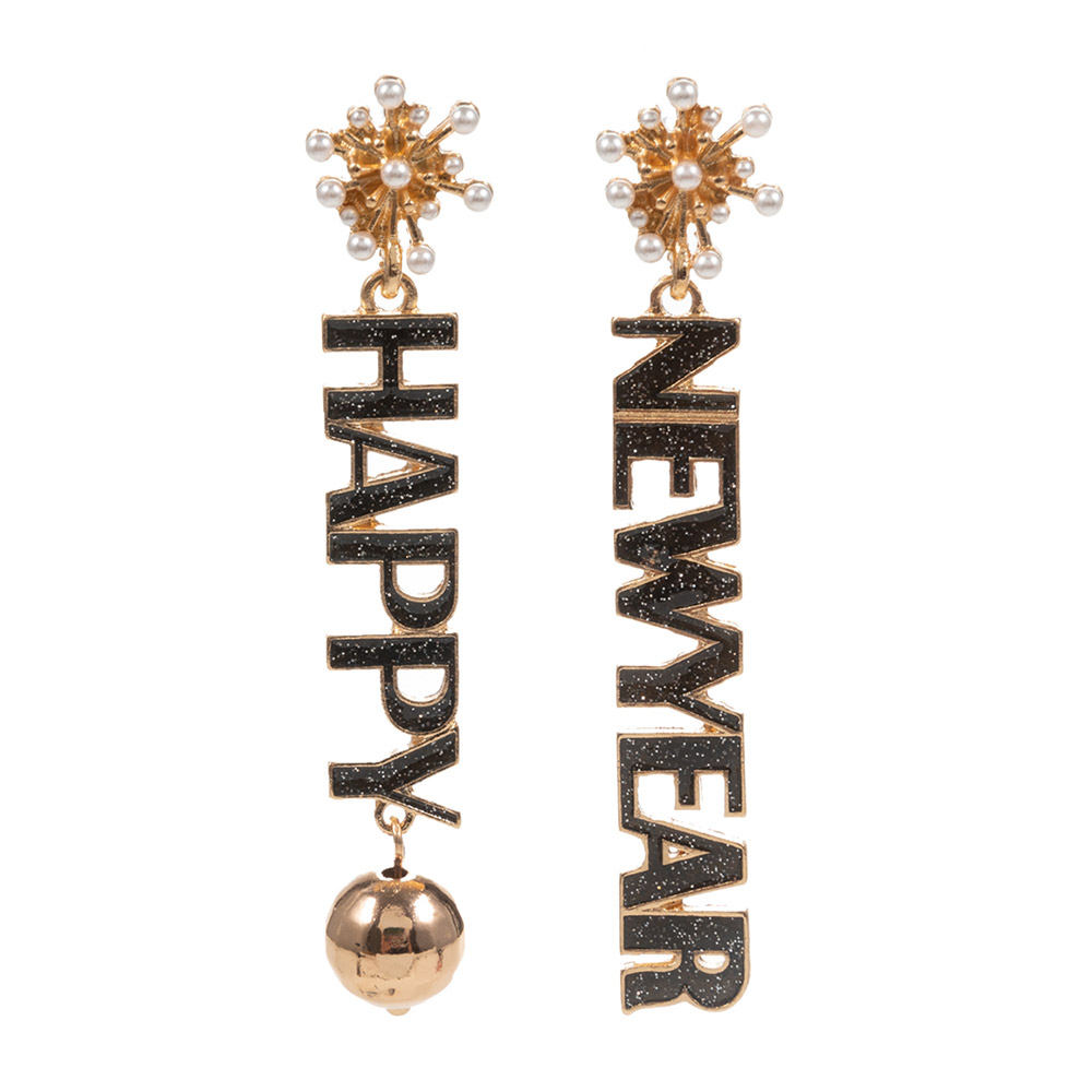 Details • Size : 0.5" X 2.5" • Titanium Post Back • Celebrate in style with these glitter letter drop earrings featuring festive “HAPPY” and “NEW YEAR” designs. Sparkling accents and playful dangles make them the perfect statement accessory for parties and celebrations, adding fun and glamour to every festive outfit. • Hypoallergenic • Lead and Nickel Compliant