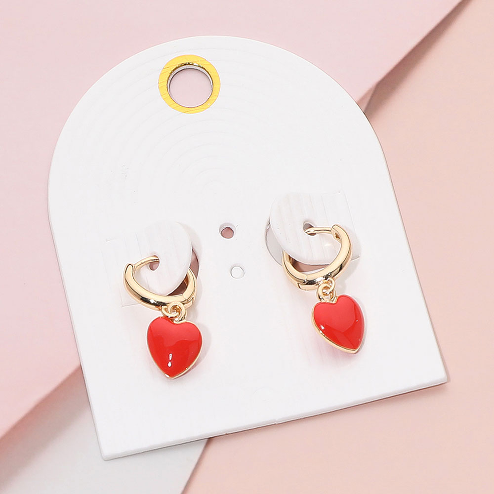Details • Size : 0.5" X 0.8" • Huggie Back • Petite huggie earrings featuring a dangling heart charm for a soft, romantic touch. Lightweight and easy to wear, they add subtle movement and shine to everyday outfits while transitioning effortlessly to evening looks for a delicate yet eye-catching finishing detail. • Lead and Nickel Compliant
