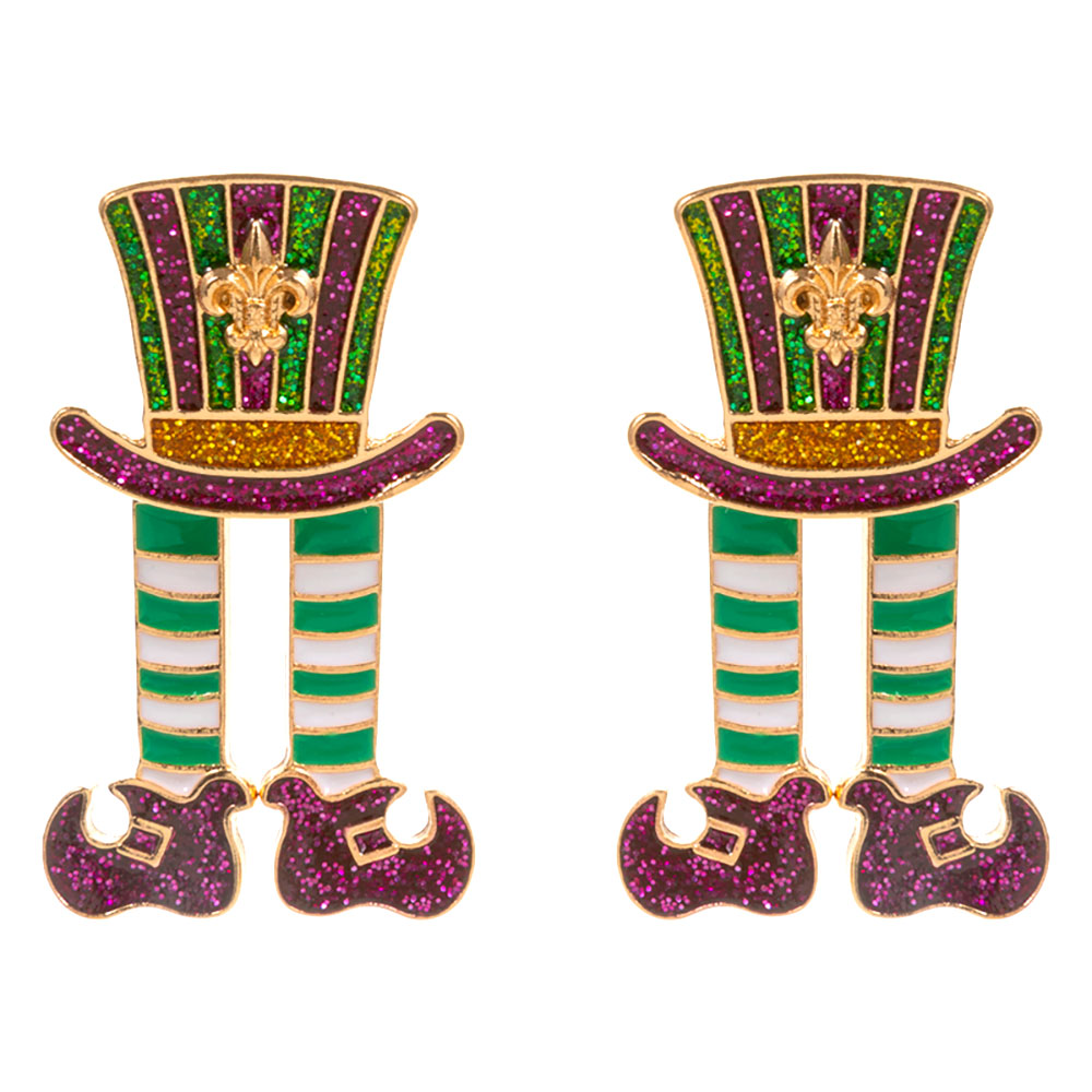 Mardi Gras Glitter Enamel Hat Shoe Earrings