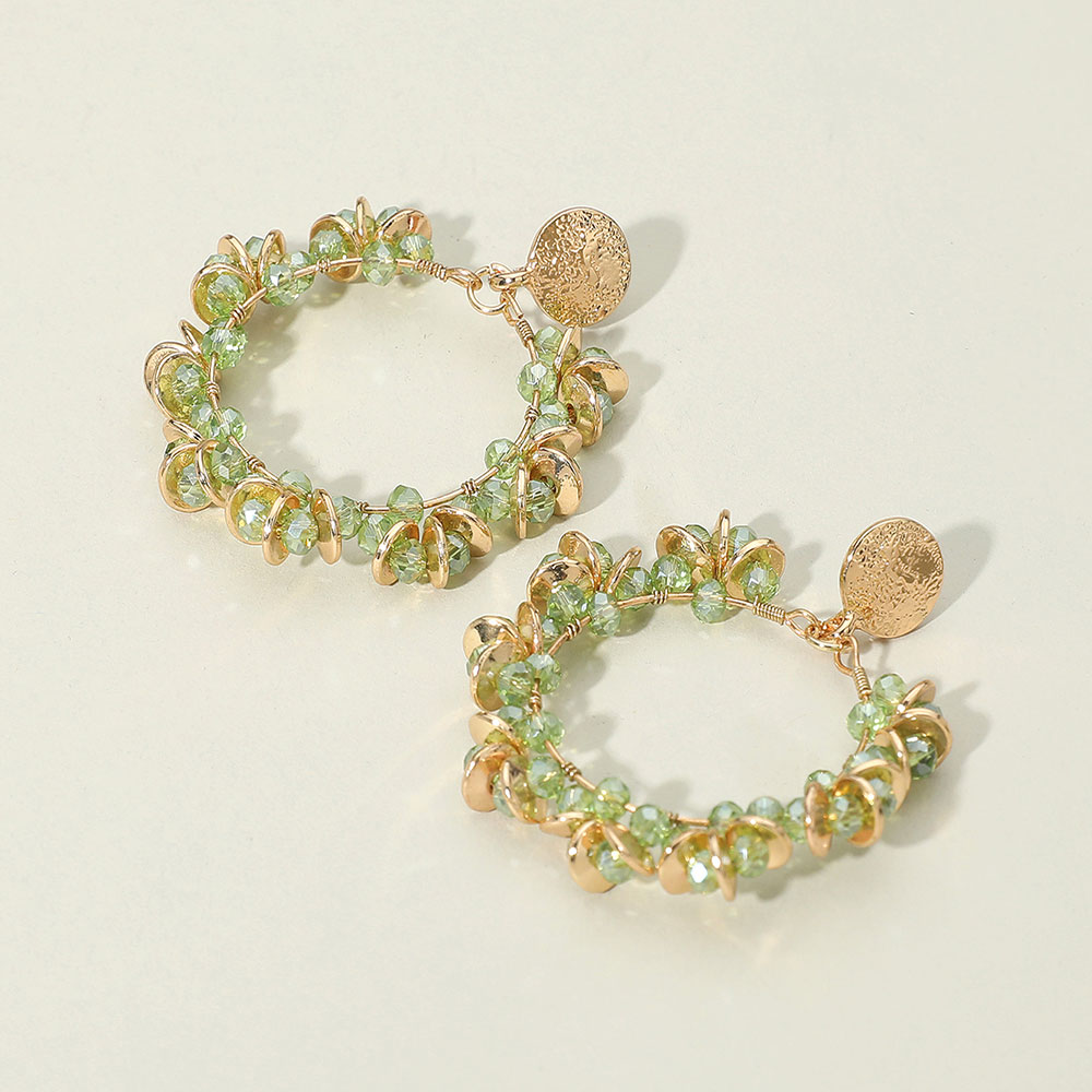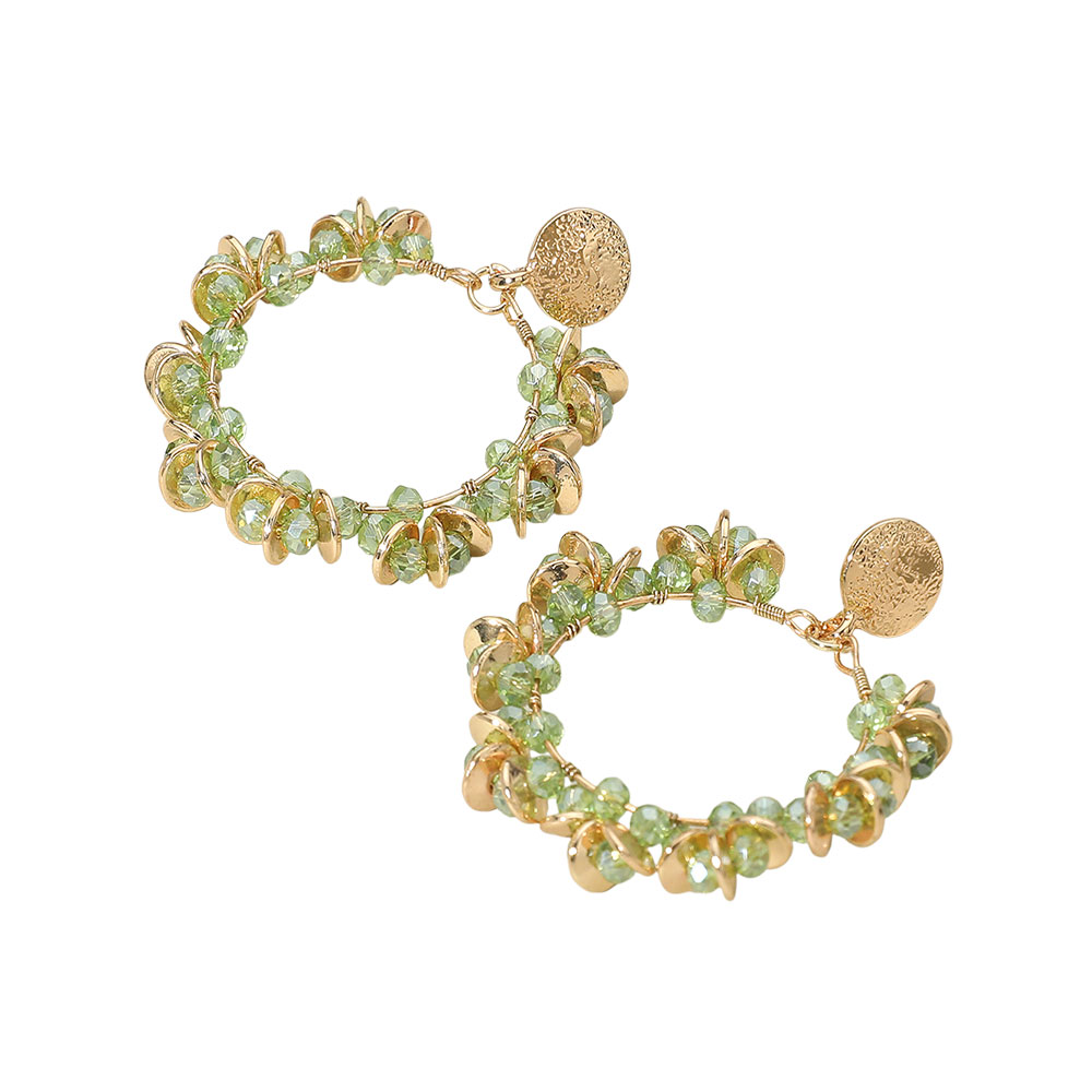Metal Disc Faceted Beaded Open Ring Dangle Earrings