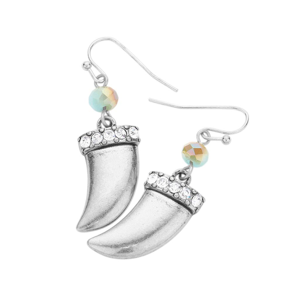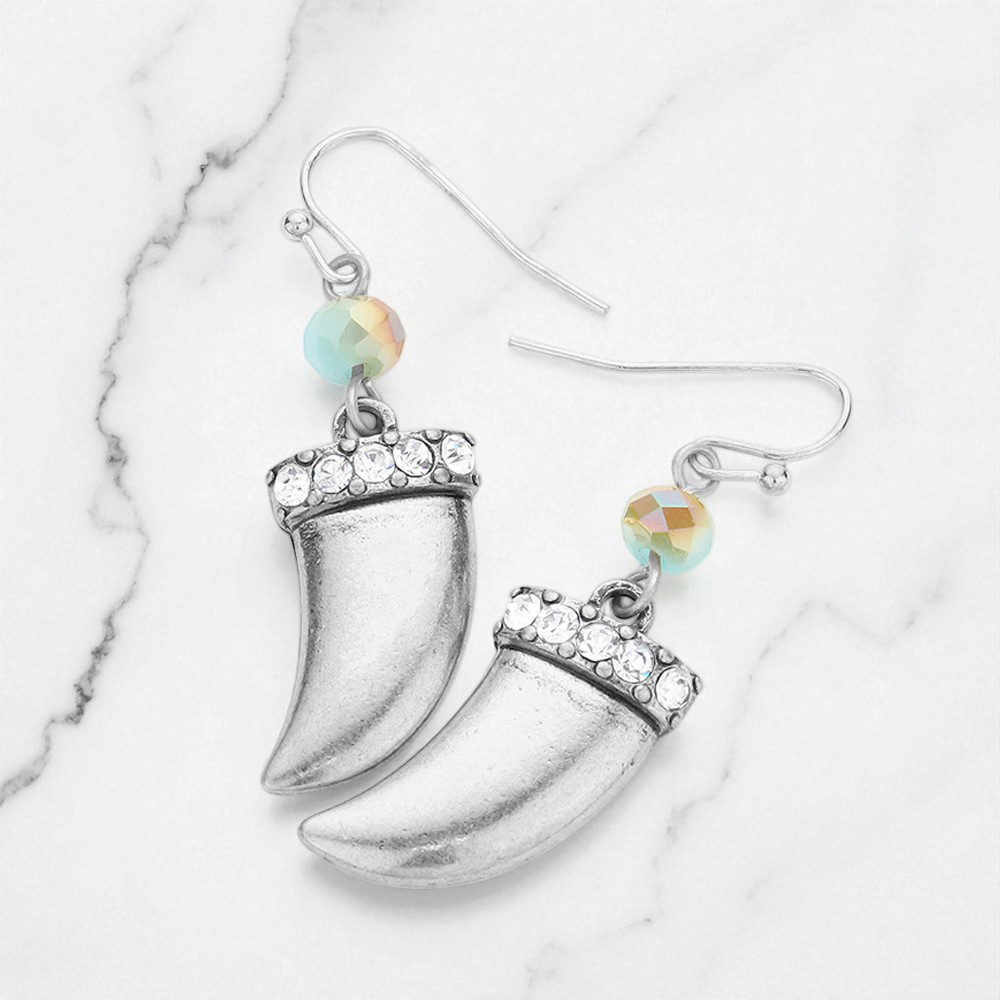 Stainless Steel Stone Paved Bone Dangle Earrings