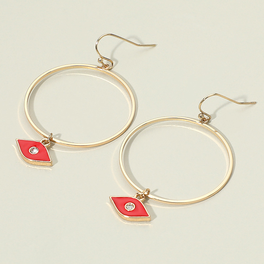 Details • Size : 1.4" X 2.25" • Fish Hook Back • These sleek hoop earrings feature a delicate eye charm with a subtle sparkle, blending elegance with modern symbolism. Lightweight and versatile, they add a chic touch to casual or dressy looks, making them a stylish accessory for everyday wear or special occasions. • Lead and Nickel Compliant