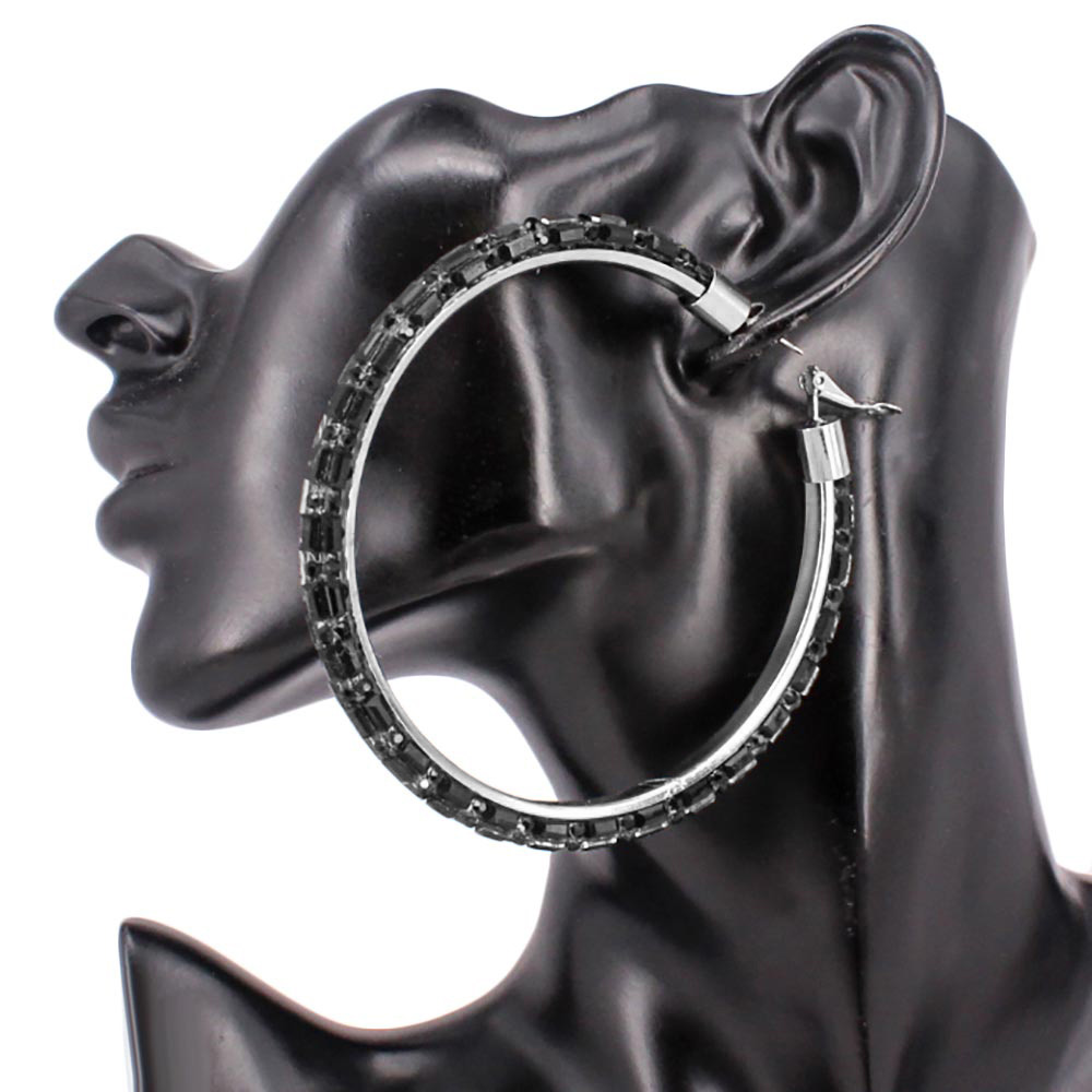 Oversized Baguette Rhinestone Embellished Hoop Earrings Oversized Baguette Rhinestone Embellished Hoop Earrings