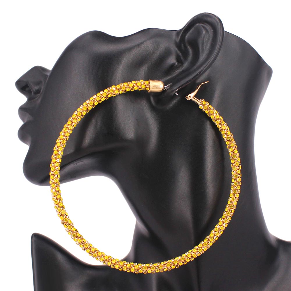 Details • Size : 4" X 4" • Omega Closure • Shine bright with these oversized rhinestone hoop earrings designed for maximum sparkle and glamour. Perfect for parties, night outs, or special events, they deliver bold style and lightweight comfort, making them the ultimate statement accessory for standout looks. • Lead and Nickel Compliant