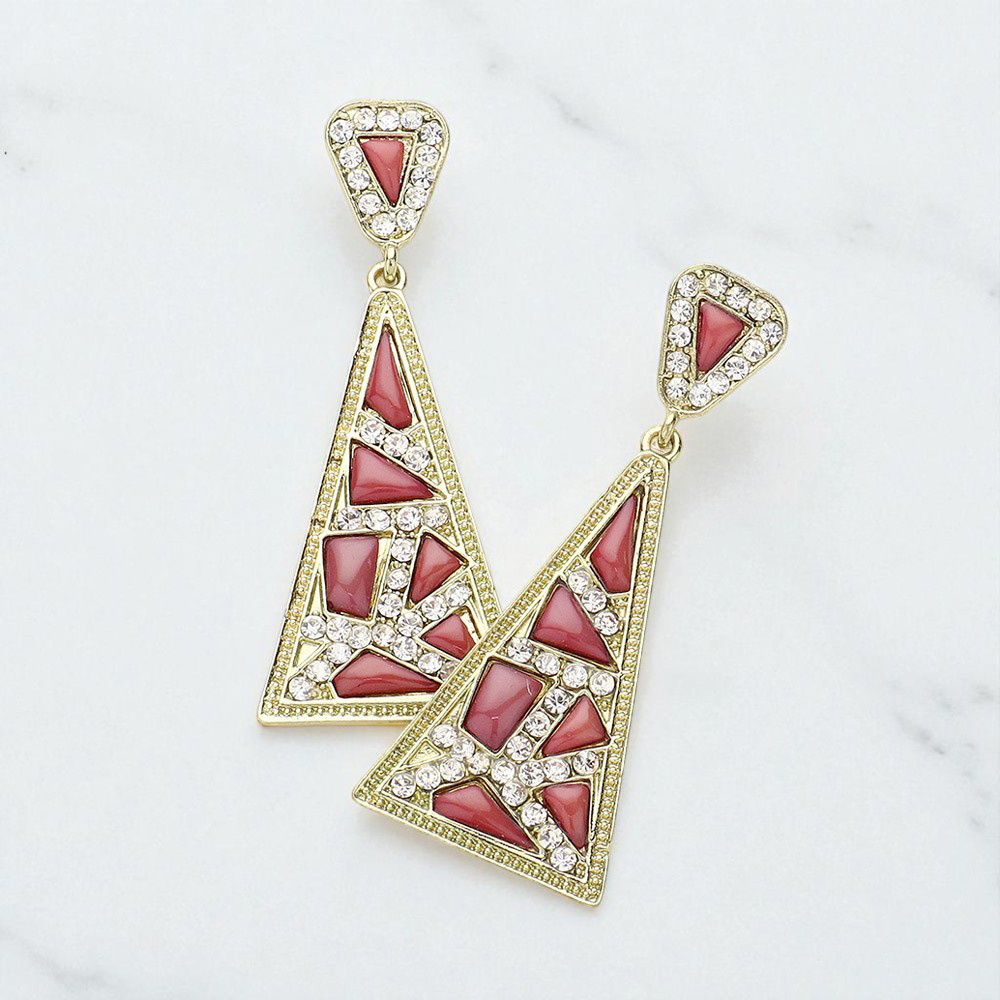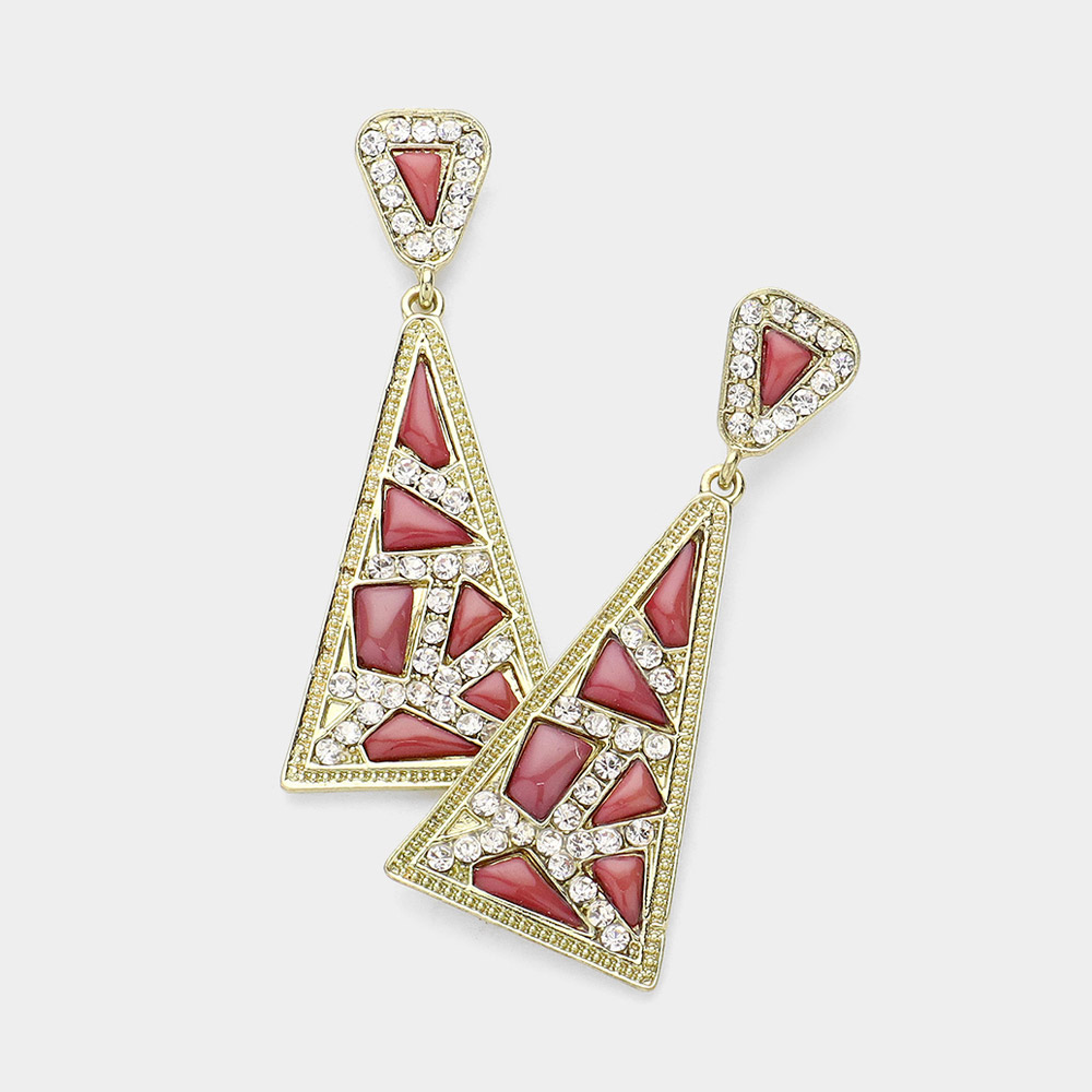 Rhinestone Trim Teardrop Stone Accented Evening Earrings