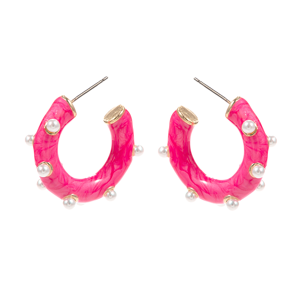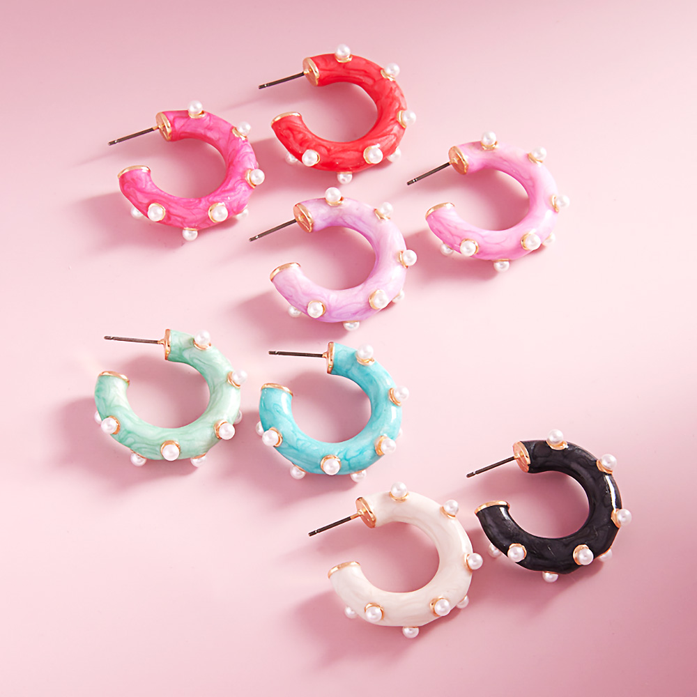 Pearl Embellished Marbled Enamel Hoop Earrings