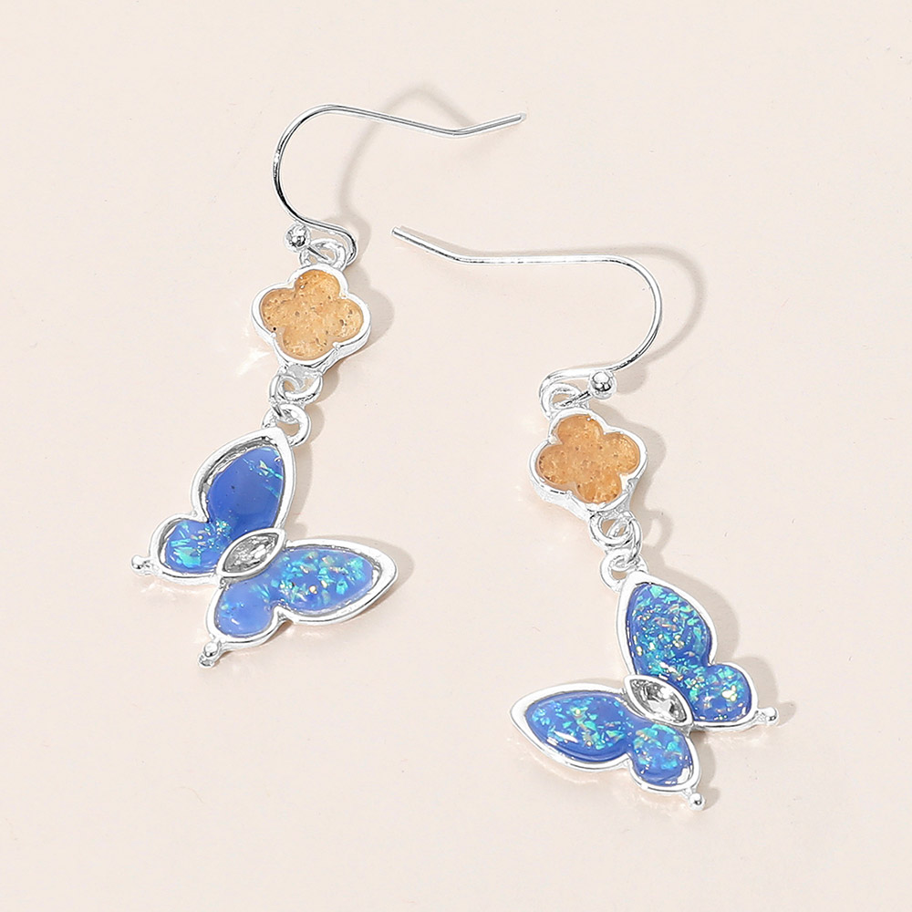 Details • Size : 0.7" X 1.7" • Fish Hook Back • Butterfly charm drop earrings featuring a graceful dangling design with delicate movement. A charming accessory for everyday styling, spring and summer outfits, gift shops, and seasonal collections, adding a whimsical touch that pairs easily with casual looks or dressy ensembles. • Lead and Nickel Compliant