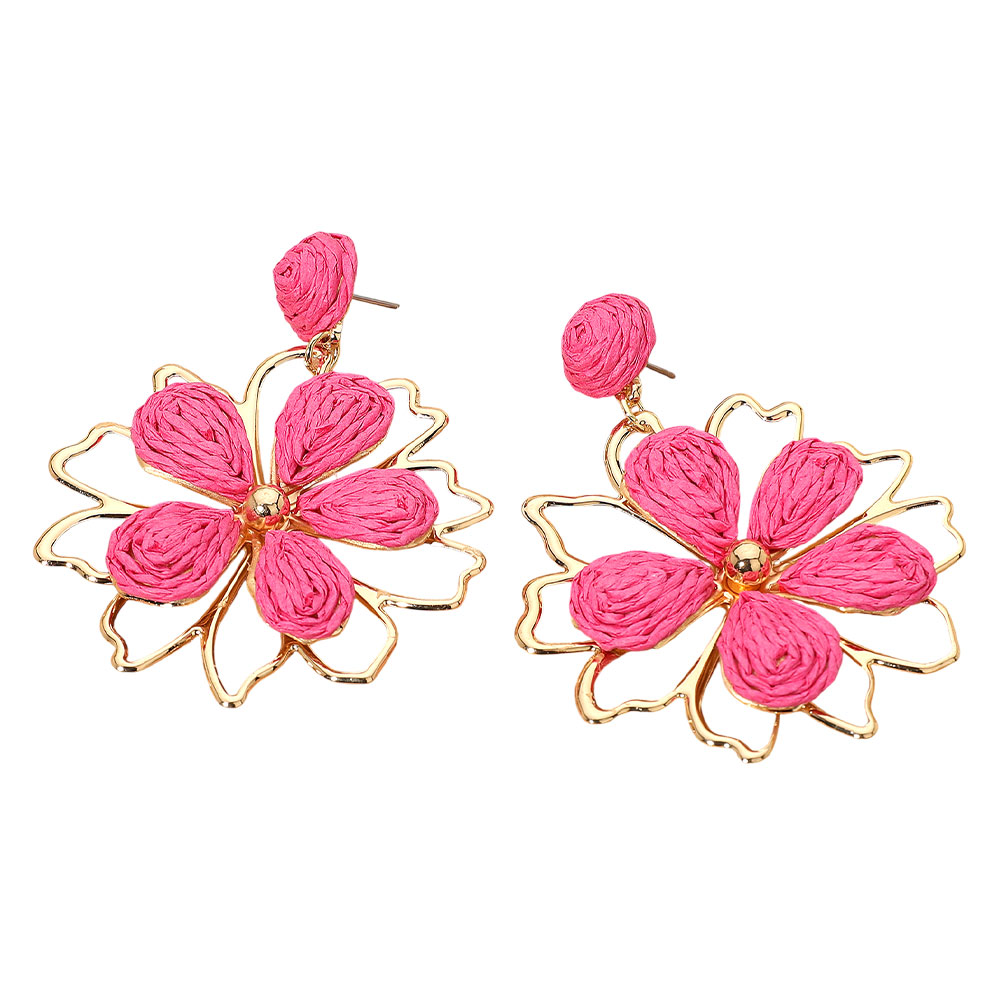 Raffia Wrapped Floral Petal Dangle Earrings Raffia Wrapped Floral Petal Dangle Earrings