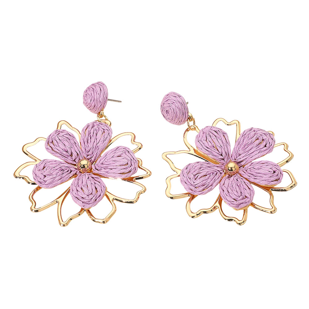Raffia Wrapped Floral Petal Dangle Earrings Raffia Wrapped Floral Petal Dangle Earrings
