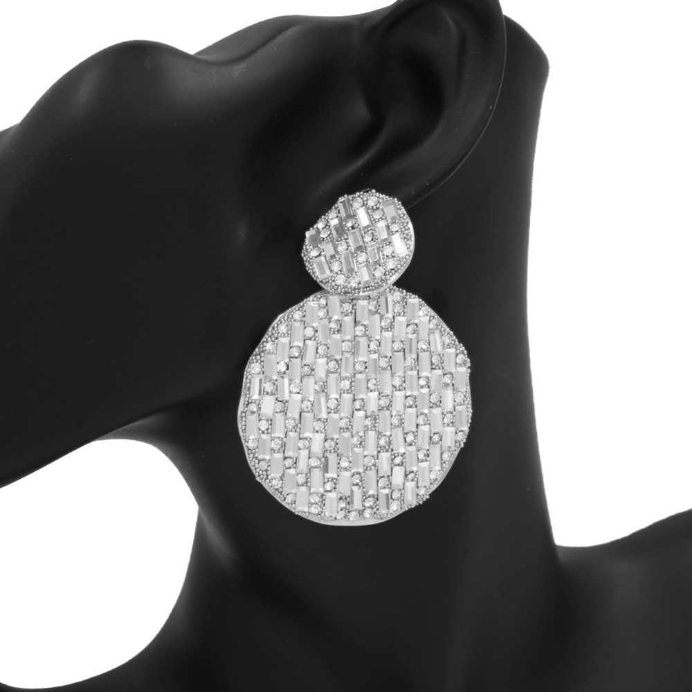 Rectangular Glass Stone Cluster Dangle Evening Earrings