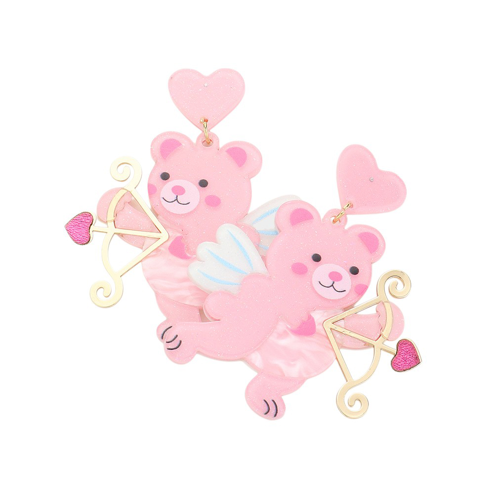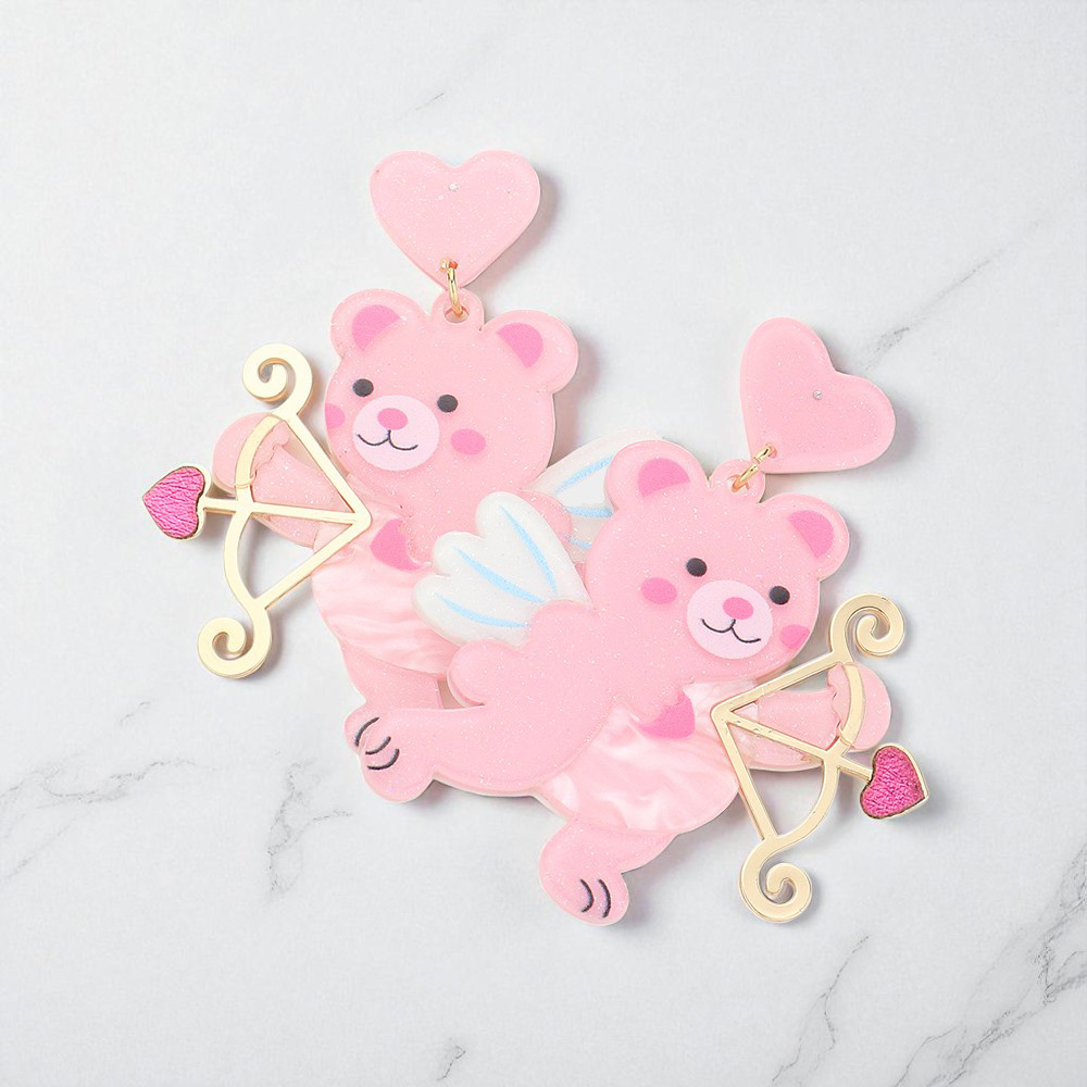 Resin Cupid Bear With Arrow Dangle Earrings
