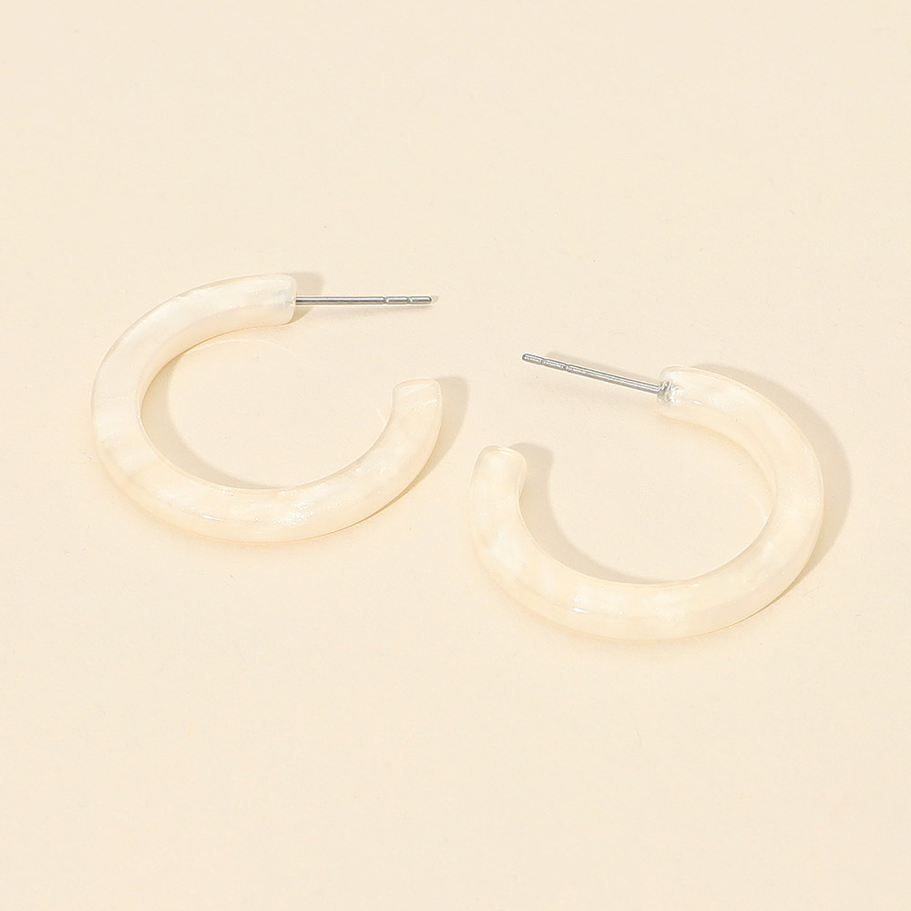 • These classic patterned open hoop earrings feature a sleek circular design with a subtle marbled effect that adds depth and style. Lightweight and effortlessly chic, they’re ideal for everyday wear or pairing with modern, minimalist outfits for a touch of timeless sophistication.