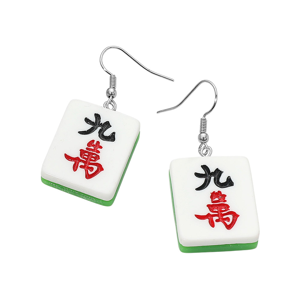 Resin Mahjong Tile Dangle Earrings Resin Mahjong Tile Dangle Earrings Resin Mahjong Tile Dangle Earrings