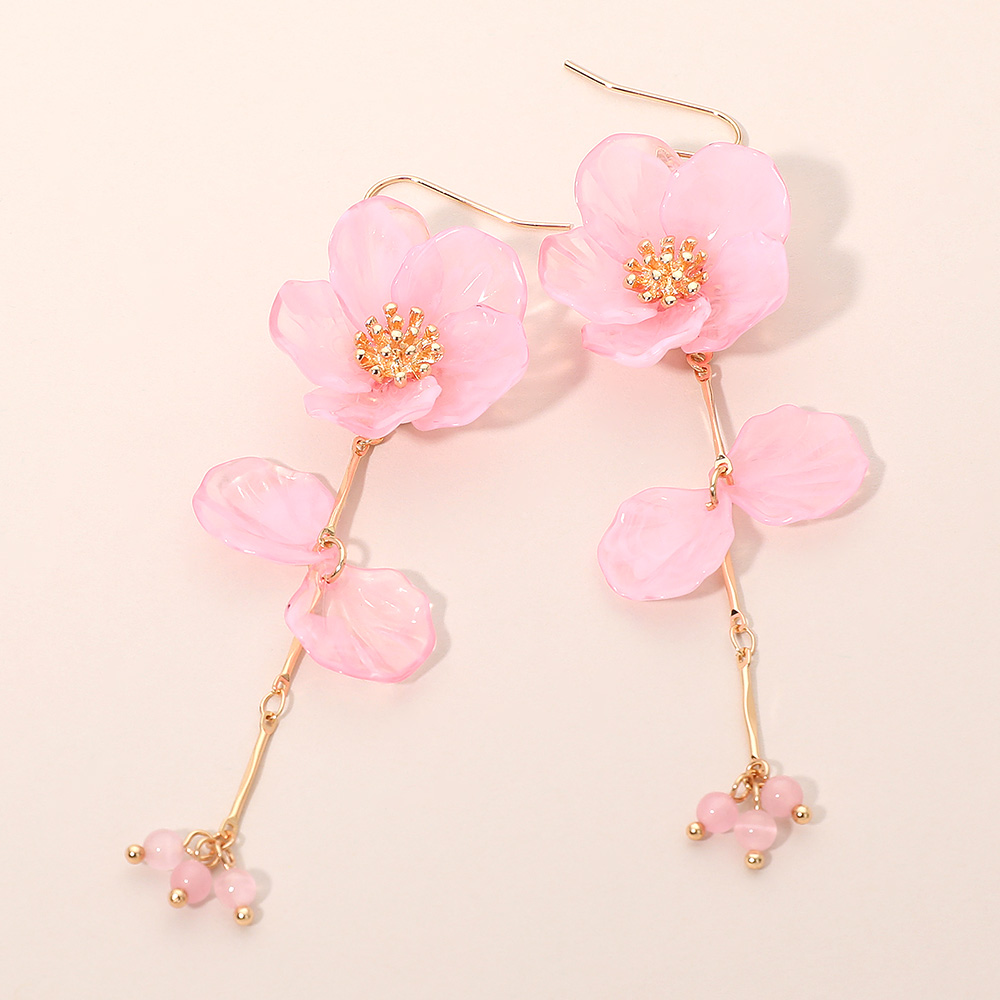 Details • Size : 1.25" X 3.75" • Fish Hook Back • Elegant long drop earrings featuring layered floral petals and delicate clustered accents for a soft, romantic look. Perfect for weddings, parties, garden events or adding graceful botanical charm to everyday style with their airy, feminine movement. • Lead and Nickel Compliant