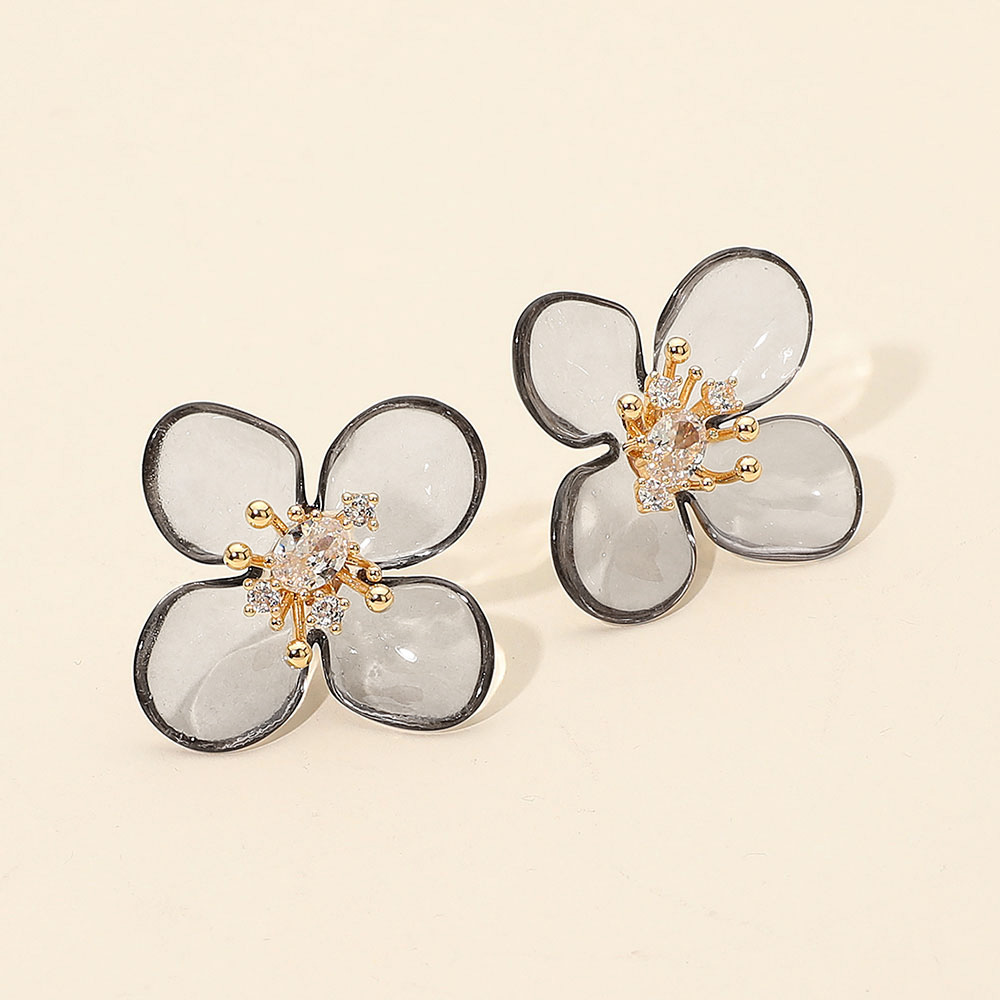 Rhinestone Accent Transparent Resin Petal Flower Earrings Rhinestone Accent Transparent Resin Petal Flower Earrings Rhinestone Accent Transparent Resin Petal Flower Earrings