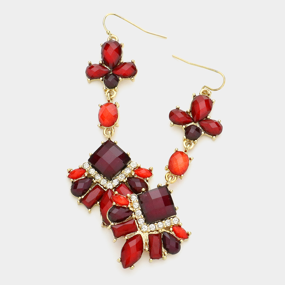 Triple Metal Star Accented Heishi Detail Open Metal Teardrop Dangle Earrings