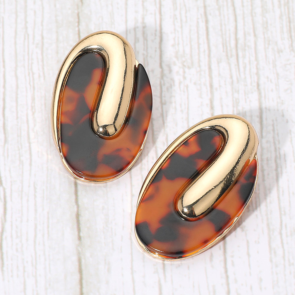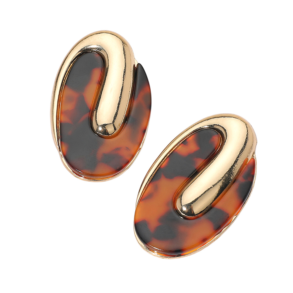 Details • Size : 1.2" X 1.9" • Post Back • These modern oval patterned resin earrings feature a bold, sculptural design that blends organic shapes with artistic flair. Their glossy finish and sleek curves create a timeless statement piece that adds sophistication to any outfit, from everyday chic to elegant evening wear. • Lead and Nickel Compliant