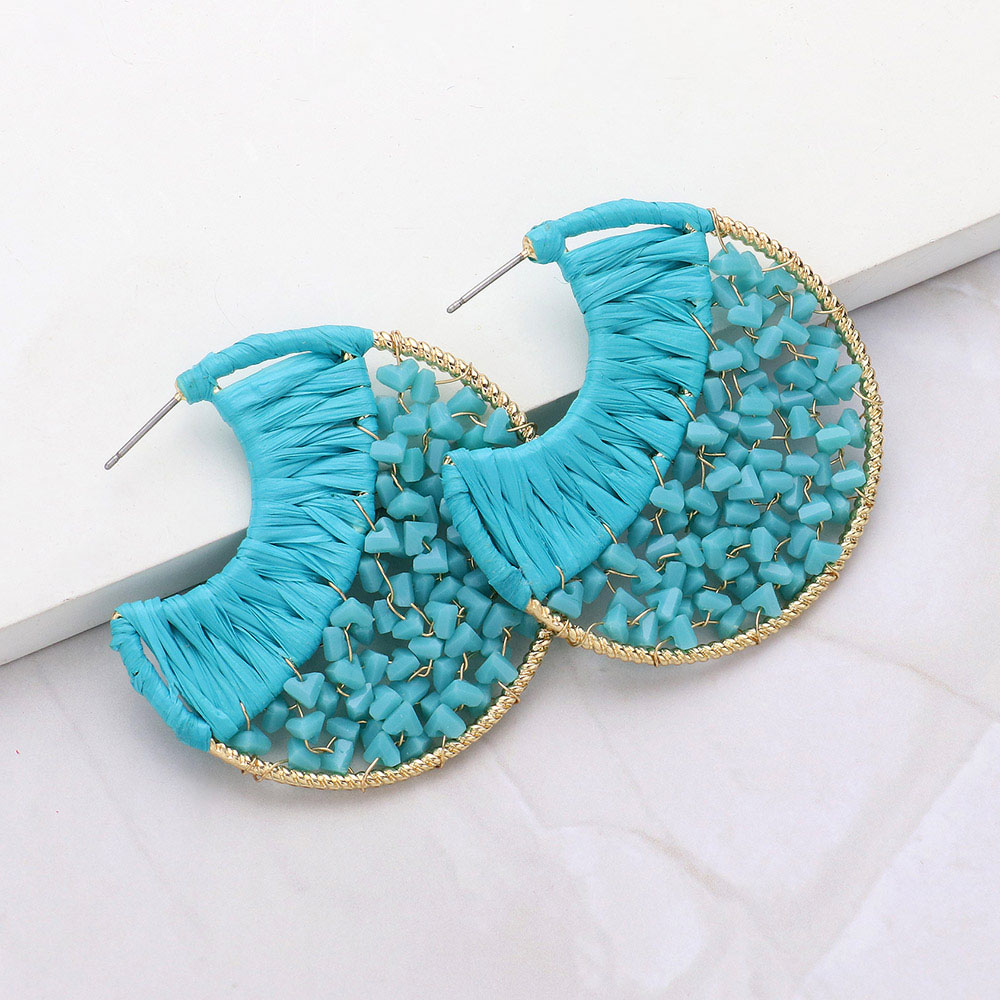 Seed Beaded Raffia Wrapped Disc Earrings
