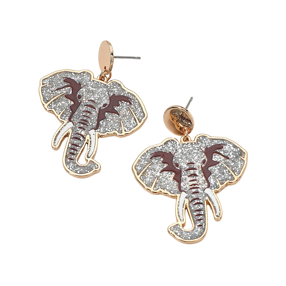 Details • Size : 1.2" X 1.5" • Post Back • Show your team spirit with these game day elephant drop earrings, designed with sparkling accents and bold detailing that stand out in the crowd. Perfect for tailgates, sports events, or spirited celebrations, these earrings bring a winning mix of sparkle, strength, and style to your look. • Lead and Nickel Compliant