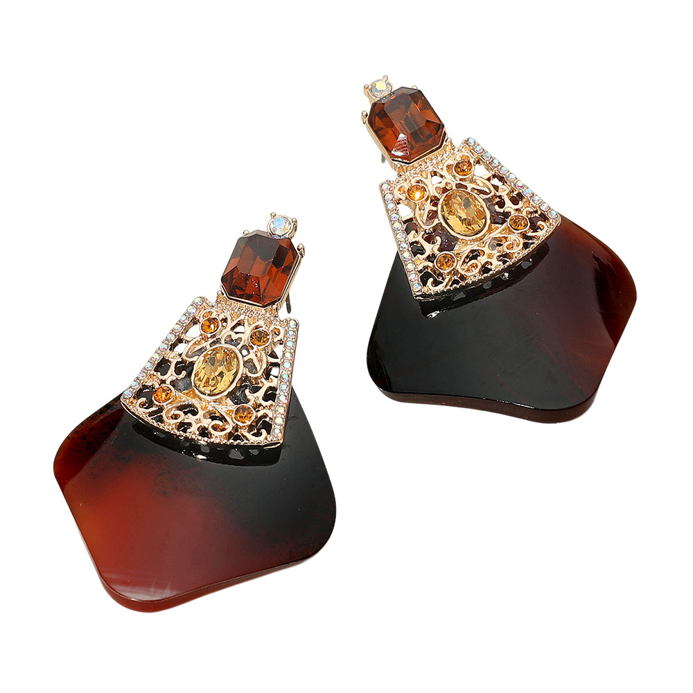 • Luxurious vintage-inspired statement earrings featuring ornate filigree detailing and radiant gem accents. The bold geometric drop shape adds sophistication and drama, making these earrings a stunning choice for evening wear, parties, or elegant special occasions.