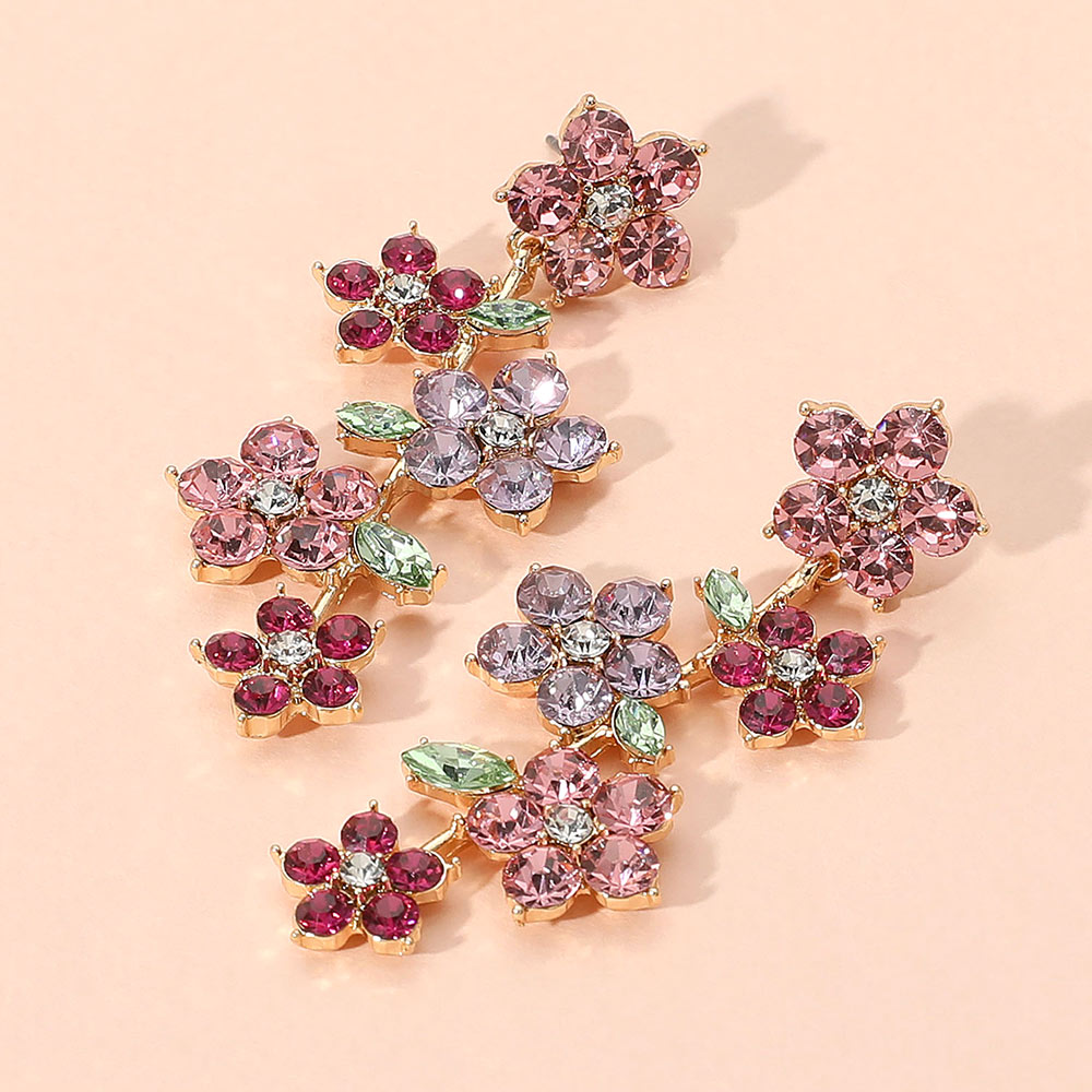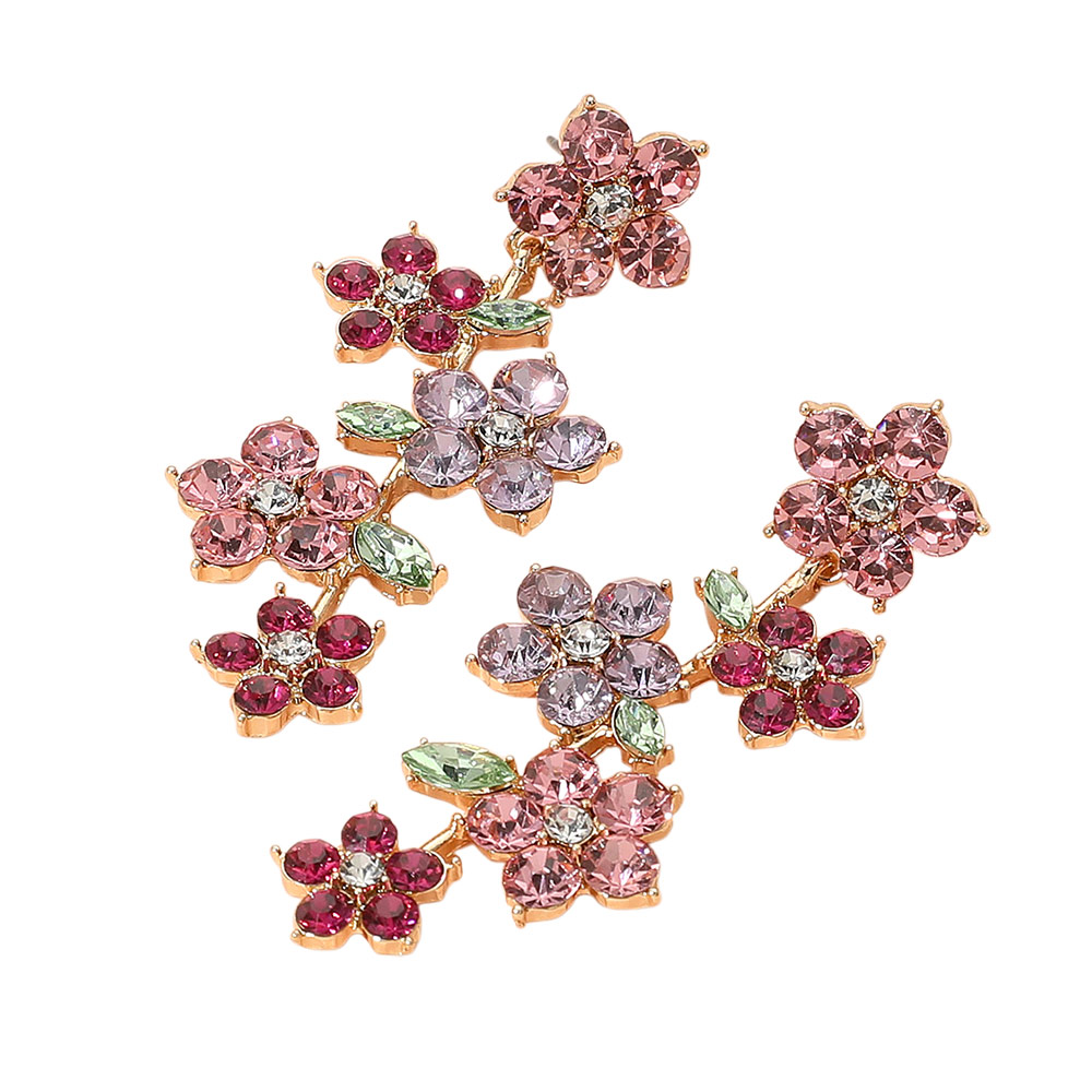 Flower Glass Crystal Teardrop Dangle Clip On Earrings