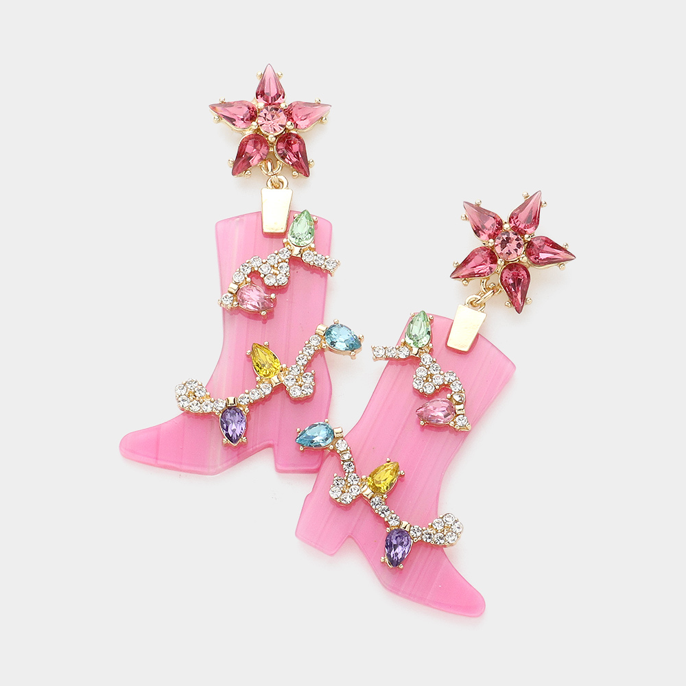 Stone Embellished Resin Cowboy Boot Dangle Earrings
