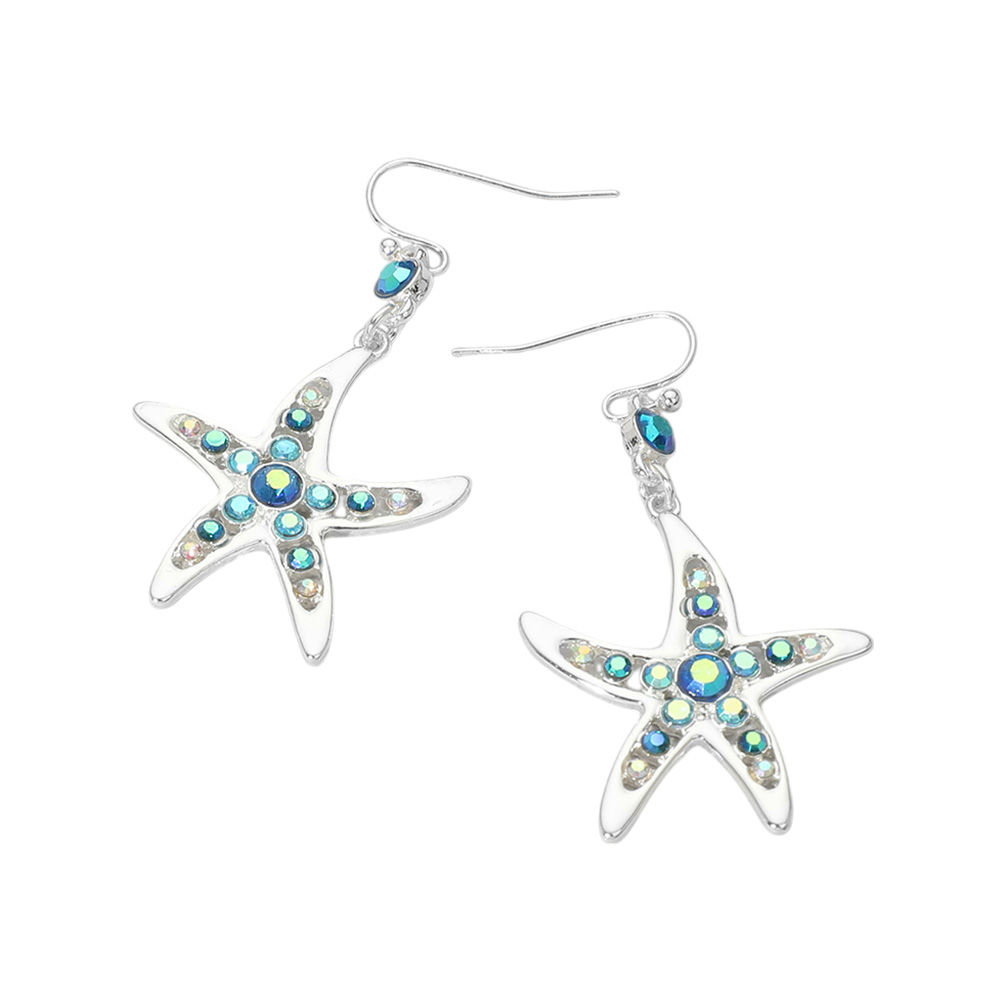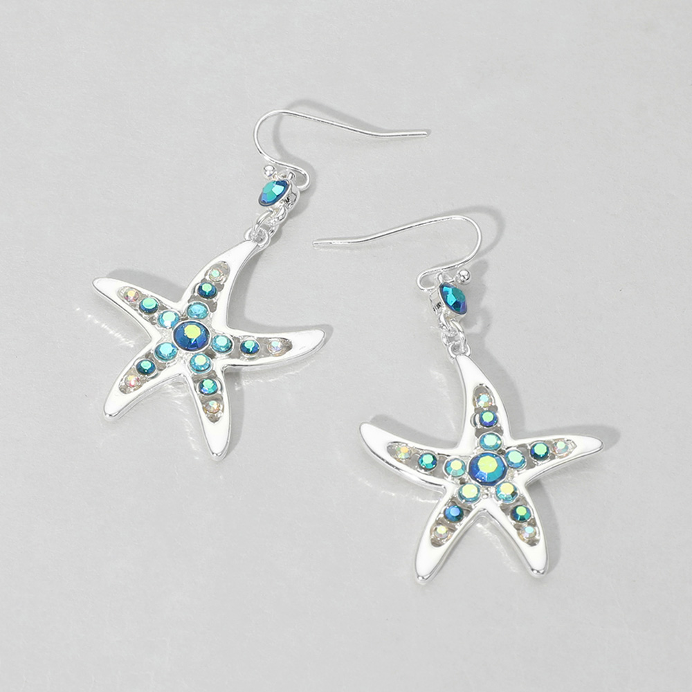 Stone Paved Starfish Dangle Earrings