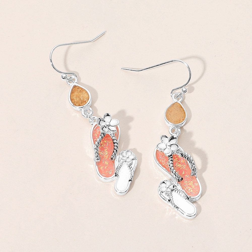 Details • Size : 0.5" X 2" • Fish Hook Back • Beach inspired flip flop charm drop earrings featuring playful movement and a relaxed coastal theme. A fun accessory for summer outfits, vacation looks, resort wear, and seaside gift assortments, adding personality and seasonal appeal while remaining lightweight and easy to style. • Lead and Nickel Compliant