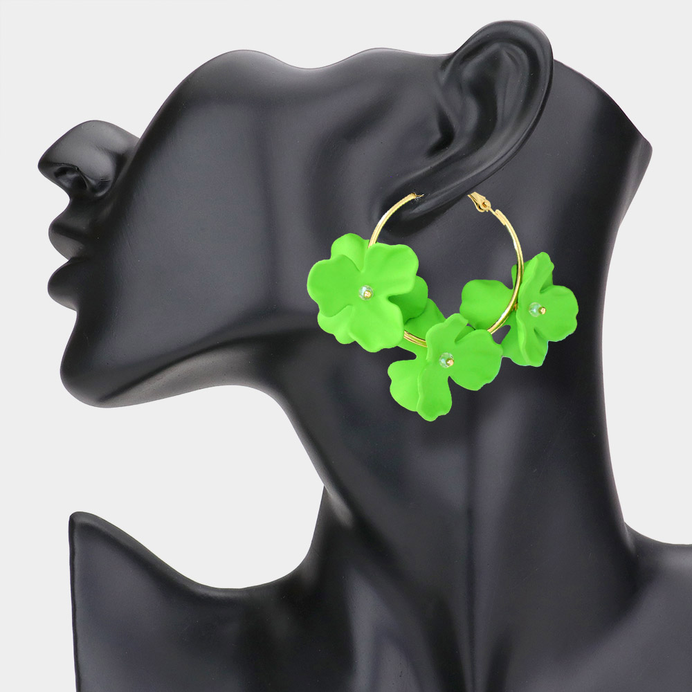 • Eye-catching floral hoop statement earrings designed with layered petal accents arranged along a circular silhouette. A bold yet feminine accessory that adds movement and personality to everyday outfits, vacation looks, seasonal collections, and boutique assortments seeking playful, fashion-forward statement jewelry.
