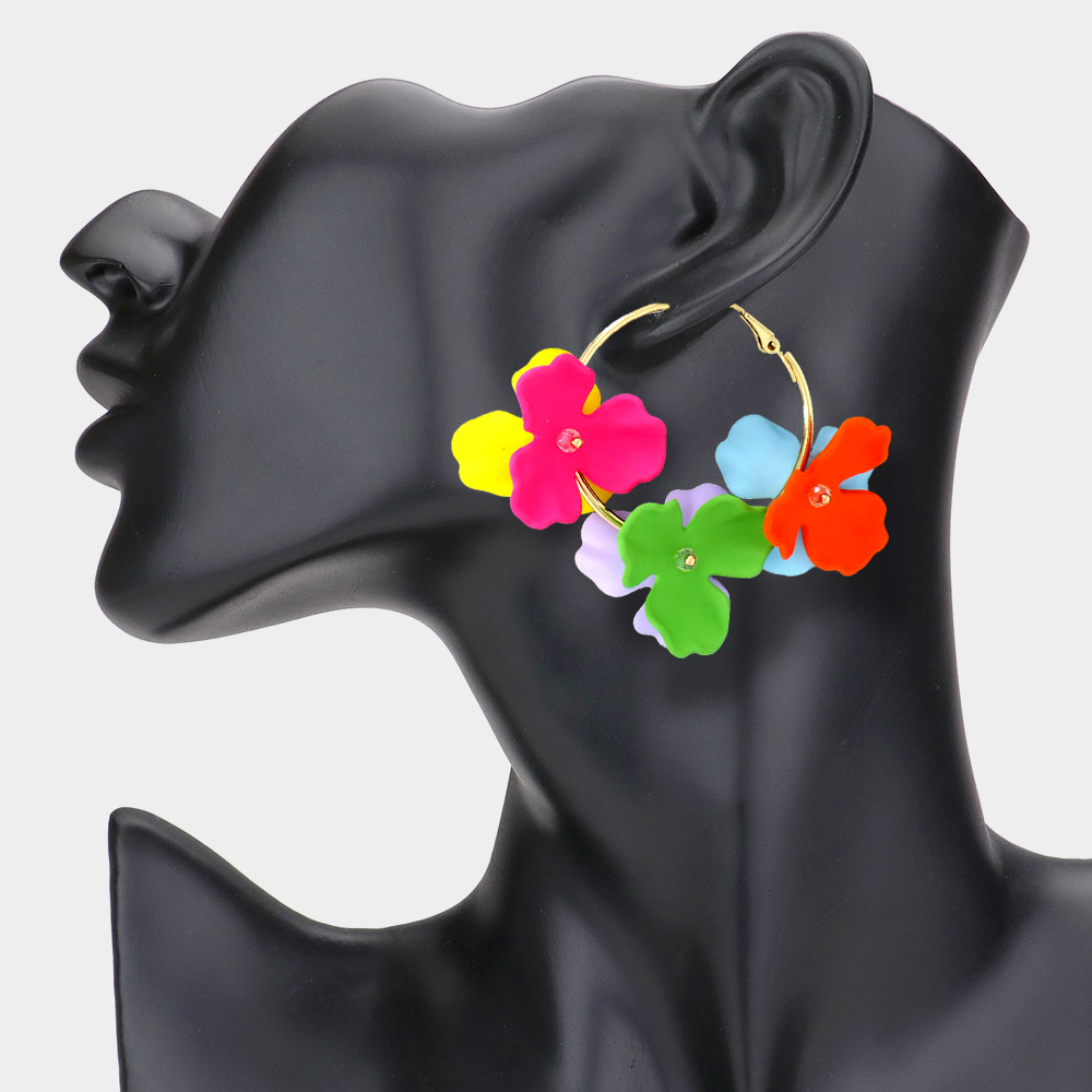 Triple Metal Cut Out Flower Hoop Statement Earrings