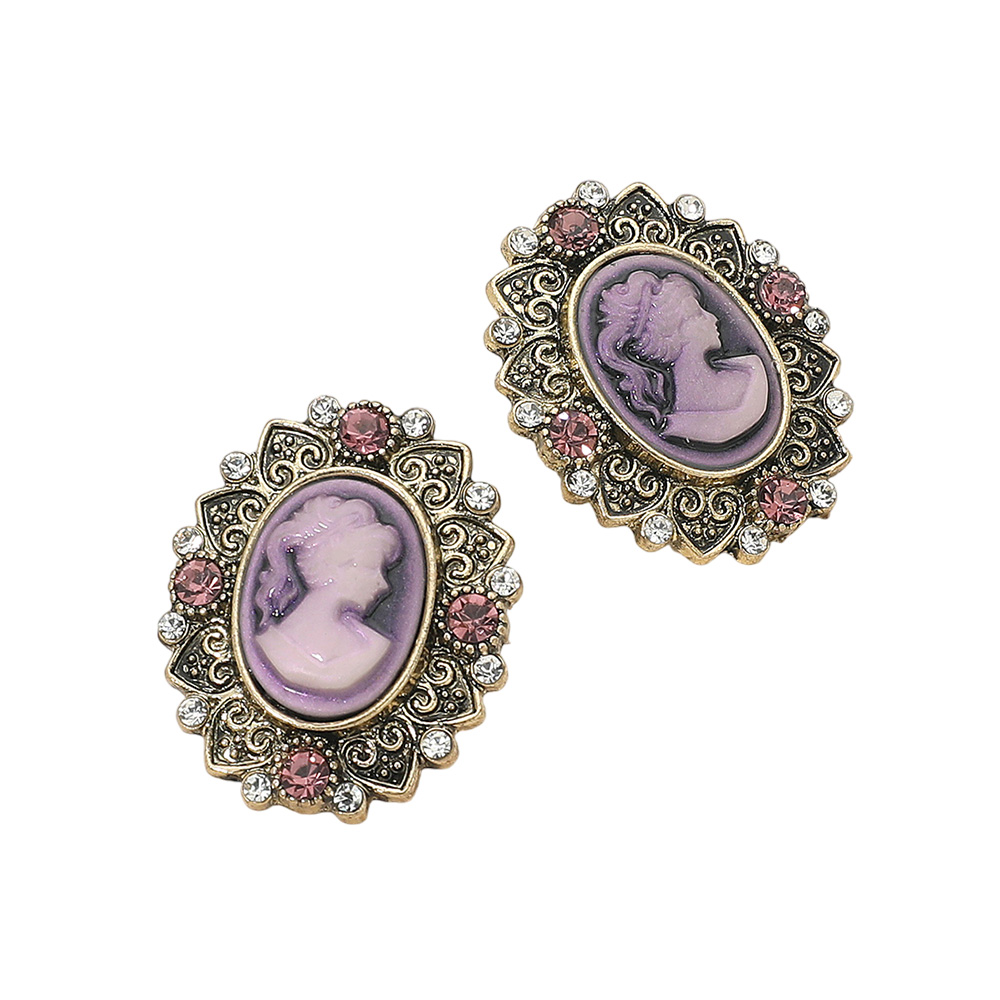Details • Size : 1" X 1.25" • Post Back • Add a touch of timeless elegance with these vintage cameo oval stud earrings featuring an ornate frame and intricate detailing. Perfect for classic or formal looks, these earrings capture antique-inspired charm that complements both modern and traditional styles beautifully. • Lead and Nickel Compliant