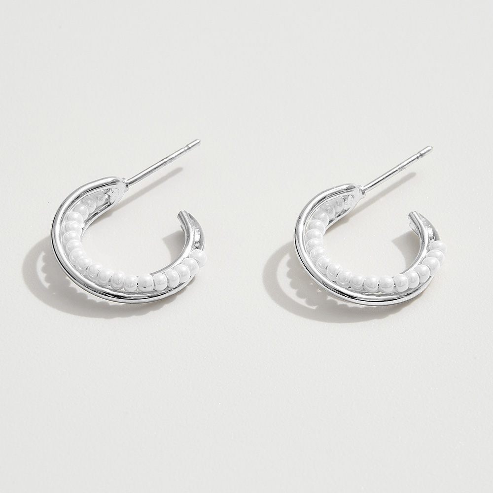 Details • Size : 0.7" X 0.7" • Post Back • These chic hoop earrings feature a sleek open hoop design accented with a row of delicate beads for a refined and modern touch. Perfect for everyday wear or special occasions, they offer a timeless balance of elegance and style to enhance any jewelry collection. • Brass • Gold Dipped • Hypoallergenic • Lead and Nickel Compliant • Made In Korea