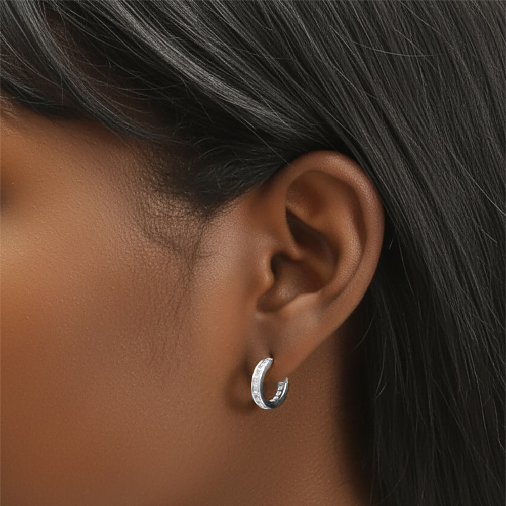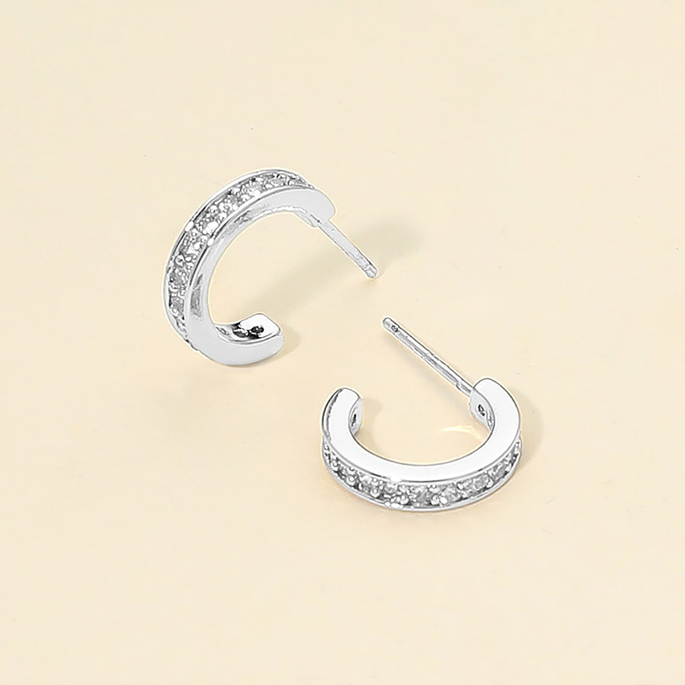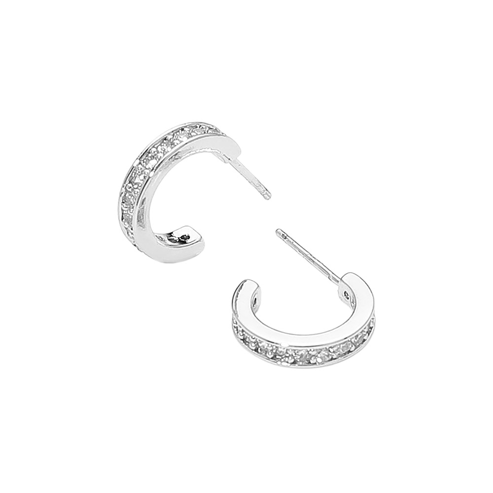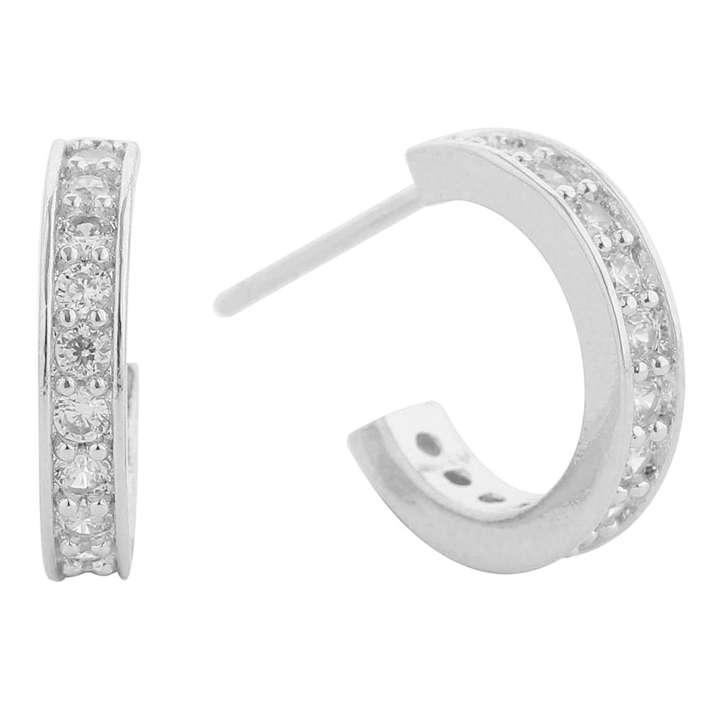 • Chic half hoop earrings designed with a sleek silhouette and shimmering pave detailing. A versatile accessory that adds a touch of sparkle to casual outfits while elevating dressy looks with timeless sophistication.