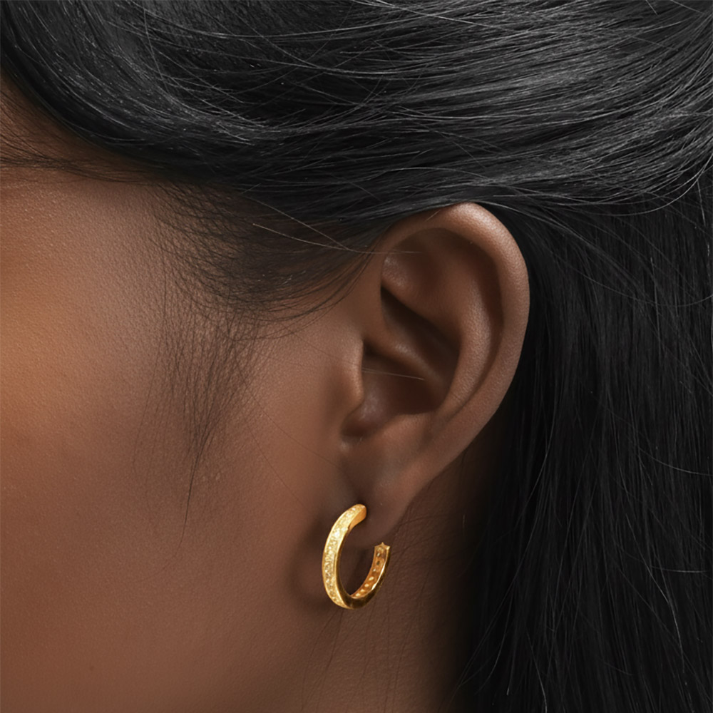 • Timeless half hoop earrings adorned with delicate shimmering accents. Their elegant curve and refined sparkle make them the perfect choice for enhancing everyday outfits or adding sophistication to evening looks.