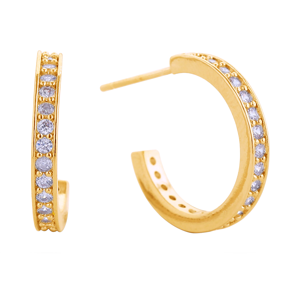 14K Gold Dipped CZ Stone Paved Open Hoop Earrings