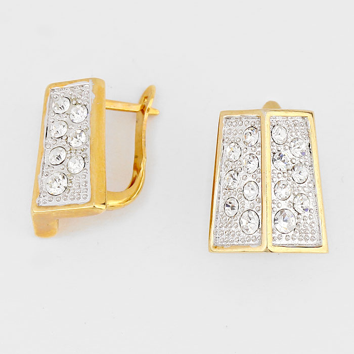 Rhinestone Embellished Angled Metal Earrings