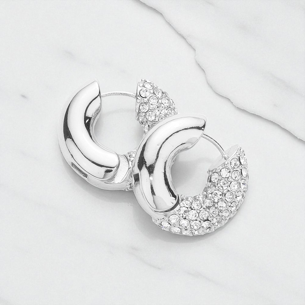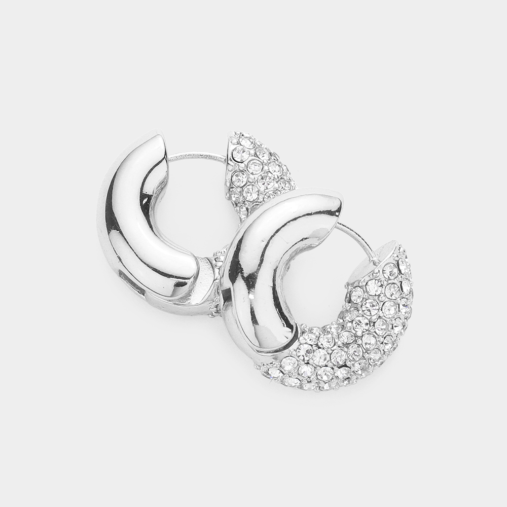 Rhinestone Embellished Huggie Hoop Earrings