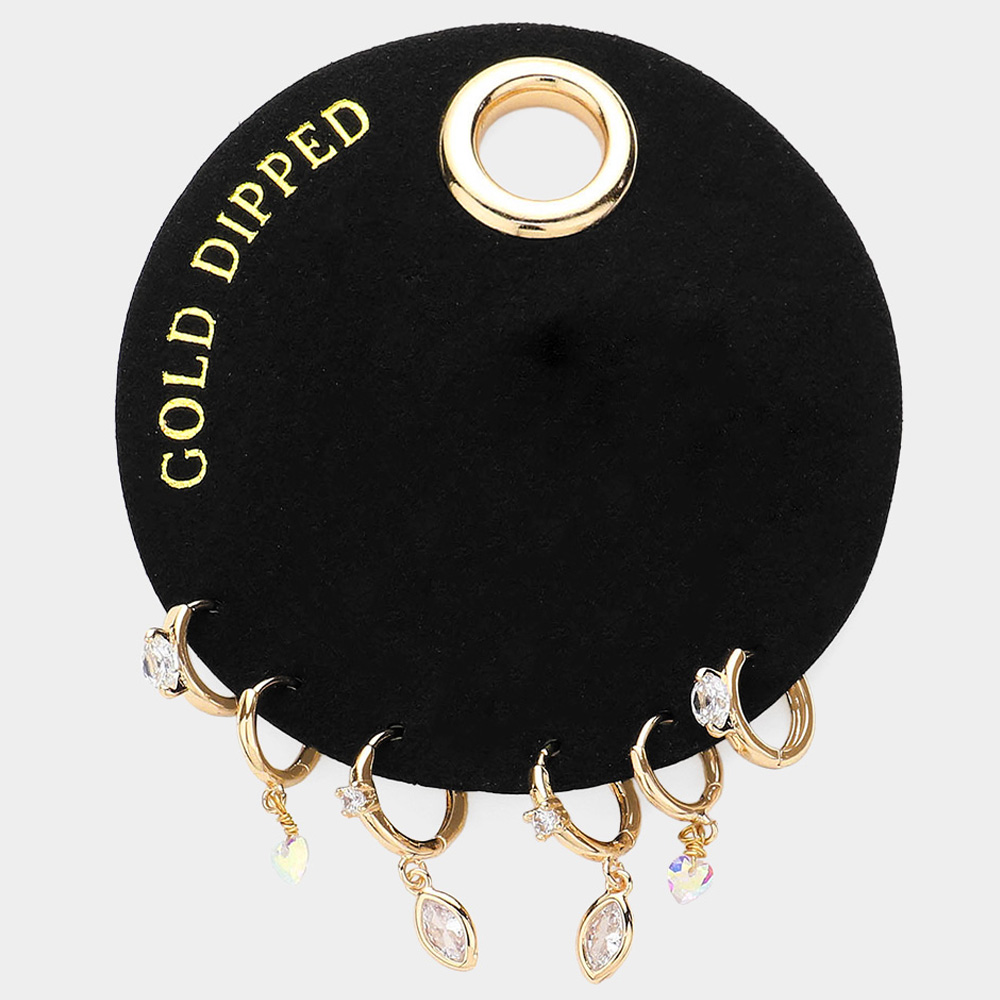 SECRET BOX_Gold Dipped Stone Pointed Huggie Back 3Pairs Mini Hoop Earrings