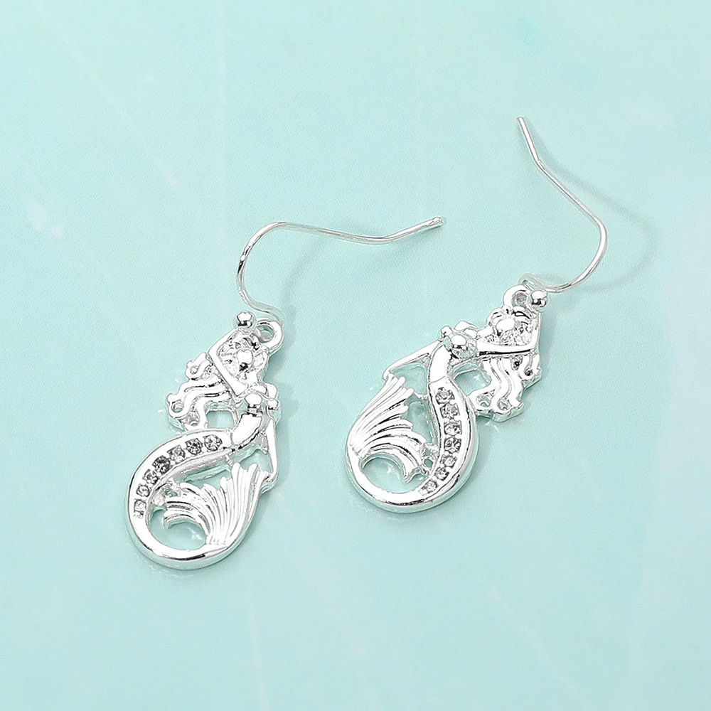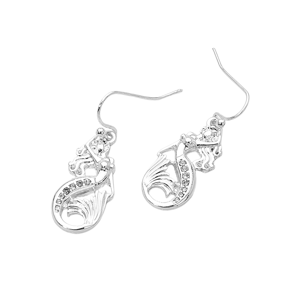 Details • Size : 0.4" X 1.3" • Fish Hook Back • Whimsical mermaid dangle earrings featuring flowing lines and graceful movement that capture an ocean inspired fantasy look. A charming accessory for beach boutiques, resort shops, summer styling, gift stores, and coastal themed jewelry collections seeking playful yet elegant appeal. • Lead and Nickel Compliant