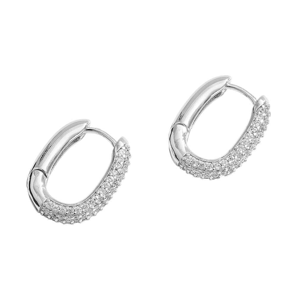 Details • Size : 0.6" X 0.75" • Huggie Back • Dazzle in understated luxury with these CZ pave oval huggie earrings. Featuring a sleek silhouette accented with sparkling cubic zirconia, they offer the perfect blend of elegance and versatility, making them an ideal accessory for elevating both everyday and evening looks. • Brass • CZ Cubic Zirconia • Gold Dipped • Hypoallergenic • Lead and Nickel Compliant • Made In Korea