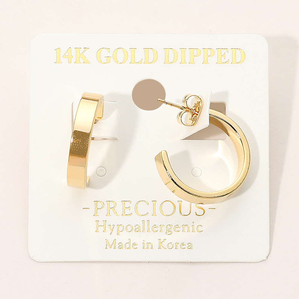 Details • Size : 0.75" X 0.75" X 0.2" • Post Back • Add a refined finish to your look with these classic half hoop stud earrings featuring a smooth curved silhouette and timeless appeal. Lightweight and easy to style, they complement casual outfits and evening ensembles alike, delivering everyday elegance with a clean, modern touch. • Gold Dipped • Hypoallergenic • Made In Korea