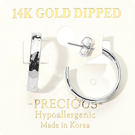 Details • Size : 0.75" X 0.75" X 0.2" • Post Back • Stylish hoop earrings with a hammered texture for a bold yet refined look. Their sculpted surface adds dimension and elegance, perfect for accentuating any outfit from daywear to special occasions. • Lead and Nickel Compliant • Hypoallergenic • Made In Korea • Gold Dipped