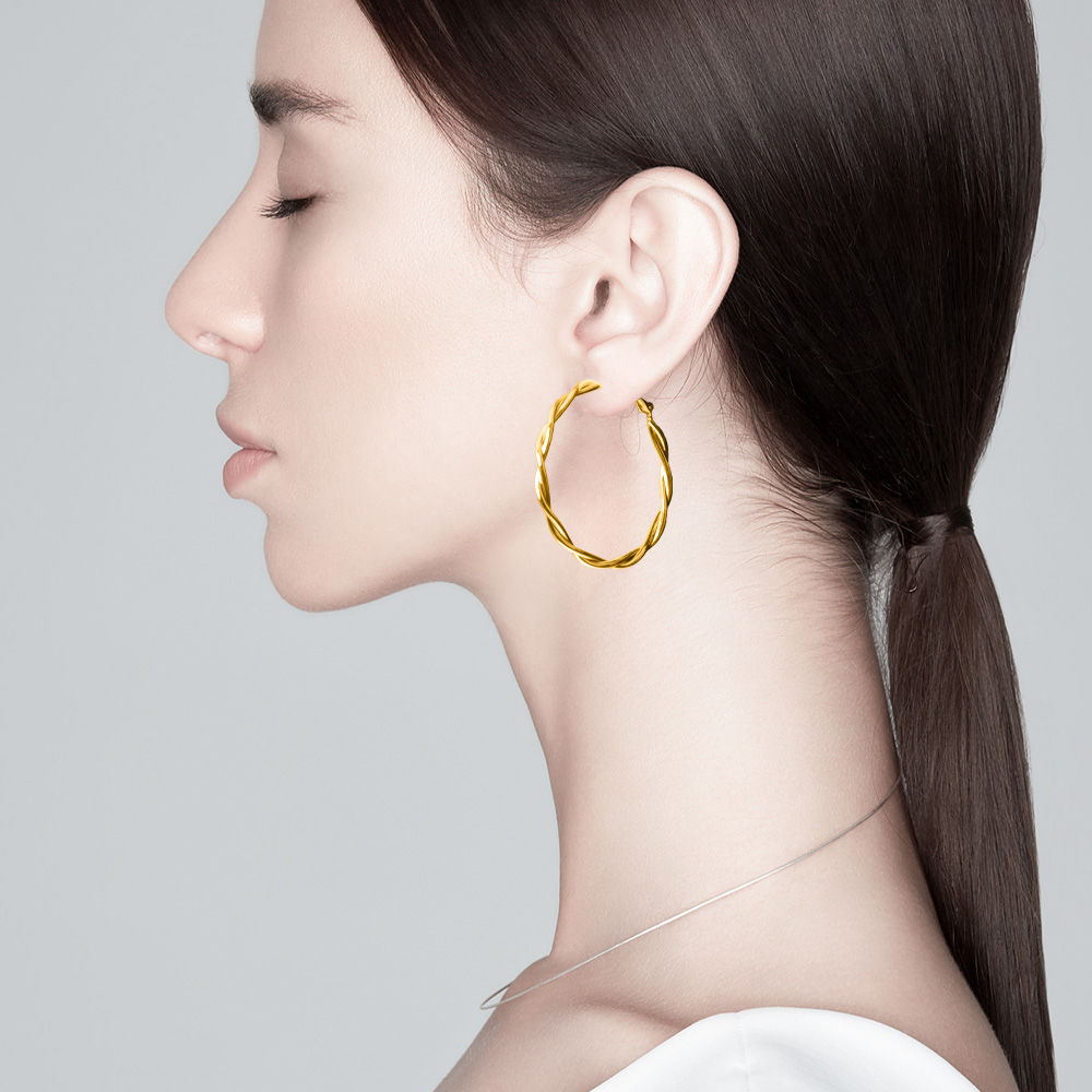 • Stylish hoop earrings featuring a twisted braided design that adds texture and elegance to any look. Lightweight and versatile, these earrings are perfect for casual or dressy occasions, offering a timeless accessory that enhances everyday outfits with a chic and modern touch.