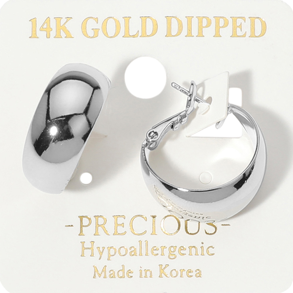 14K White Gold Dipped Hypoallergenic Metal Hoop Earrings