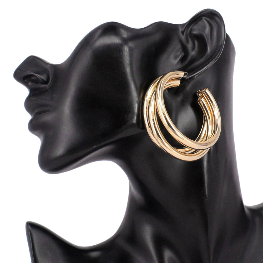 Bold Sculpted Triple Layered Metal Hoop Earrings Bold Sculpted Triple Layered Metal Hoop Earrings