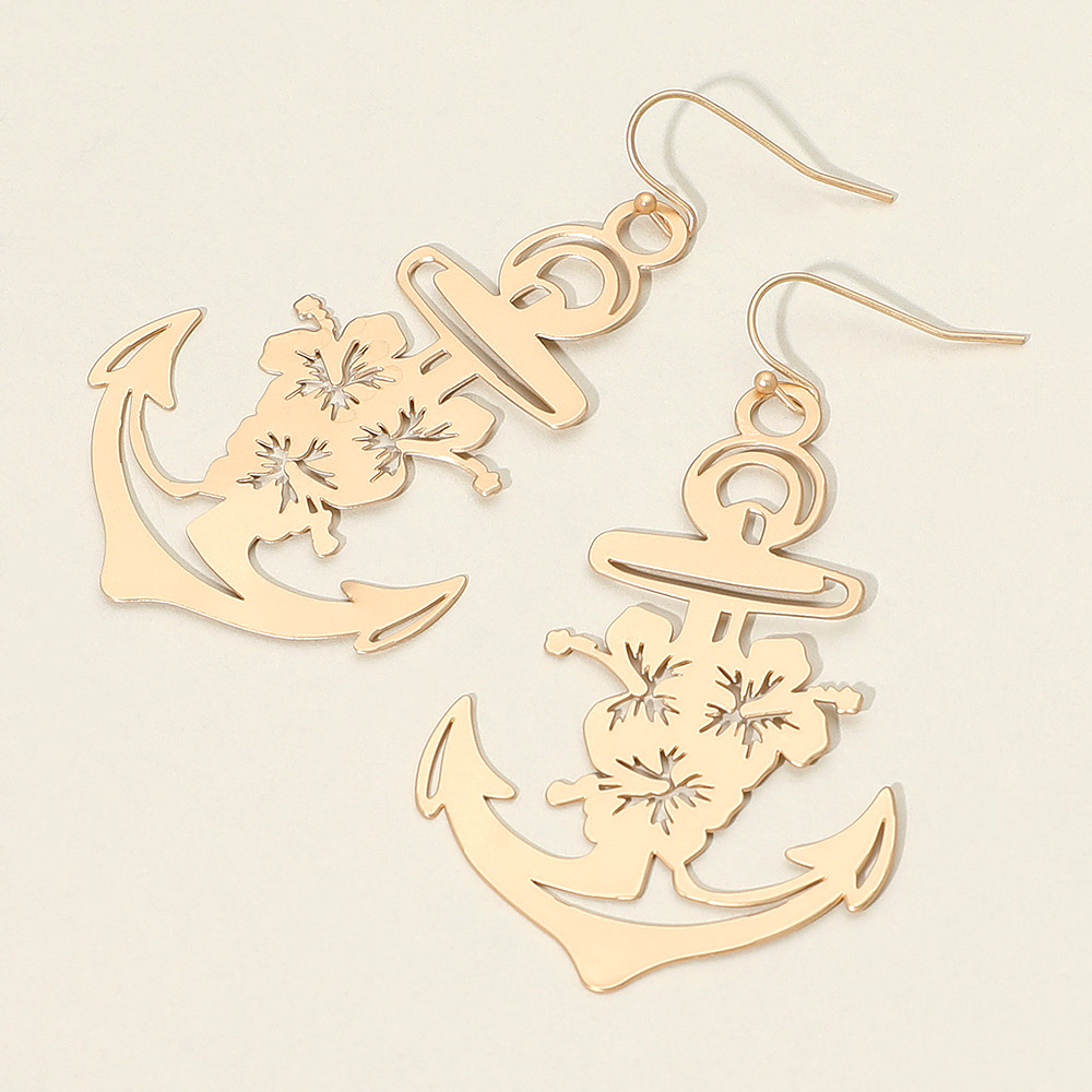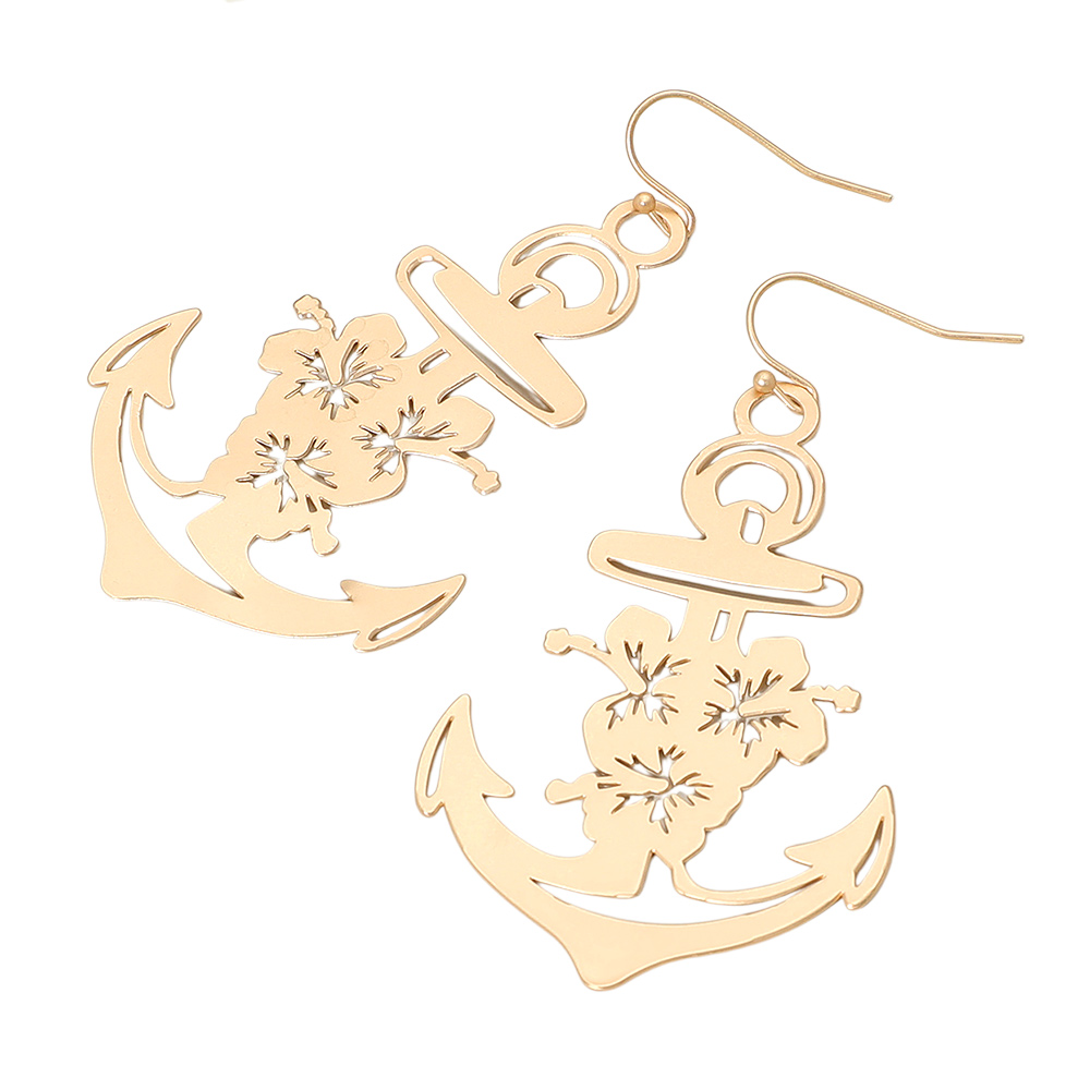 Brass Metal Cutout Anchor Dangle Earrings